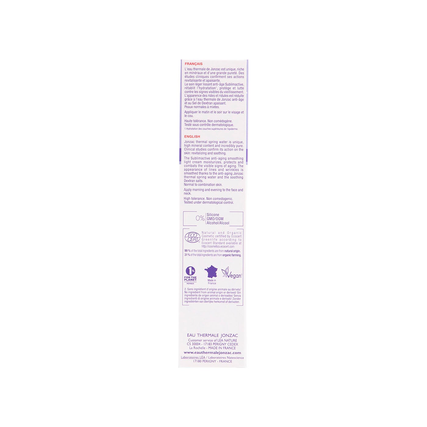 Crema ligera anti-edad Jonzac Sublimactive es una emulsión fina y sedosa que penetra rápidamente en el corazón de la epidermis combatiendo las arrugas y líneas finas de expresión. Formulado con agua termal Jonzac: 25%, sal de dextrano, Poly-ox®, el extracto de Alaria completa esta acción activando una barrera anti-radicales efectiva y aumentando la síntesis de colágeno. Biotech Poly-OX® es un ingrediente activo calmante que ayuda a inhibir los mediadores de la inflamación y la reactividad celular. También ayuda a limitar la adhesión de bacterias a la superficie de la piel y prevenir daños.