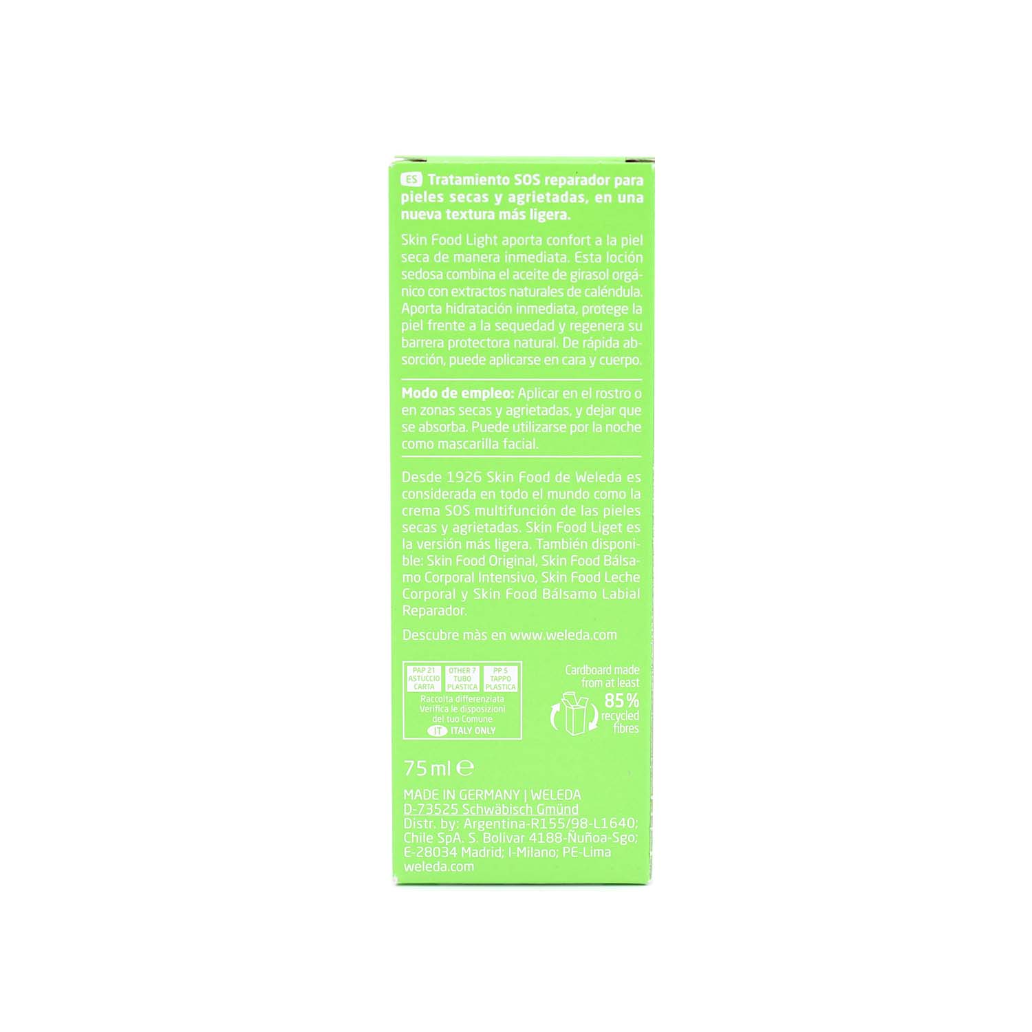 La Crema Skin Food Ligera de Weleda es una versión más ligera y de rápida absorción de la crema original Skin Food. La hace ideal para personas que prefieren una sensación menos pesada en la piel o para usar en climas más cálidos. Está hecha con ingredientes naturales, como extractos de plantas medicinales, aceites vegetales y cera de abejas, que ayudan a suavizar, nutrir y proteger la piel, por lo que brindará una hidratación intensa y nutritiva a la piel seca o áspera. Weleda es una empresa suiza que se especializa en la fabricación de productos cosméticos y de cuidado personal naturales y orgánicos.