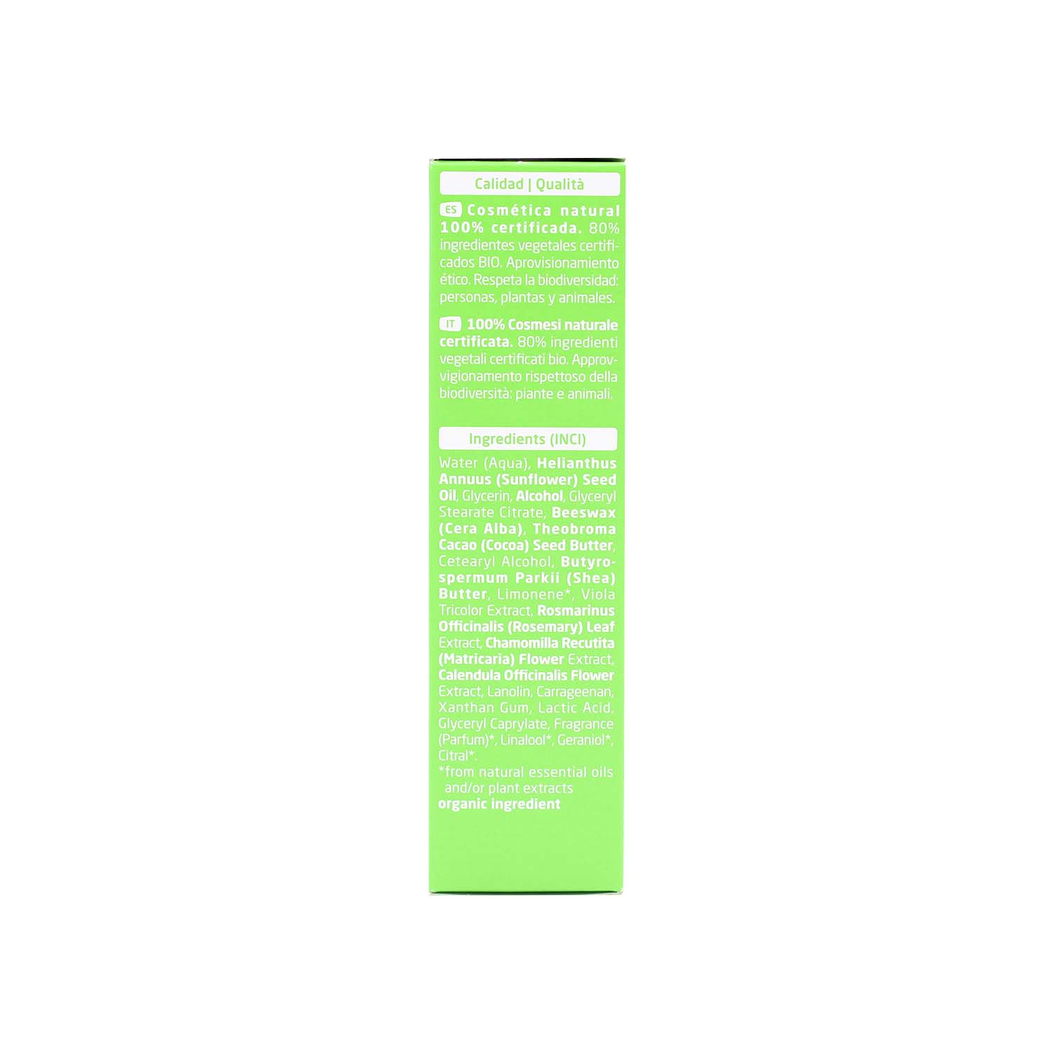 Water (Aqua), Helianthus Annuus (Sunflower) Seed Oil, Glycerin, Alcohol, Glyceryl Stearate Citrate, Beeswax (Cera Alba), Theobroma Cacao (Cocoa) Seed Butter, Cetearyl Alcohol, Butyrospermum Parkii (Shea) Butter, Limonene*, Viola Tricolor Extract, Rosmarinus Officinalis (Rosemary) Leaf Extract, Chamomilla Recutita (Matricaria) Flower Extract, Calendula Officinalis Flower Extract, Lanolin, Carrageenan, Xanthan Gum, Lactic Acid, Glyceryl Caprylate, Fragrance (Parfum)*, Linalool*, Geraniol*, Citral*