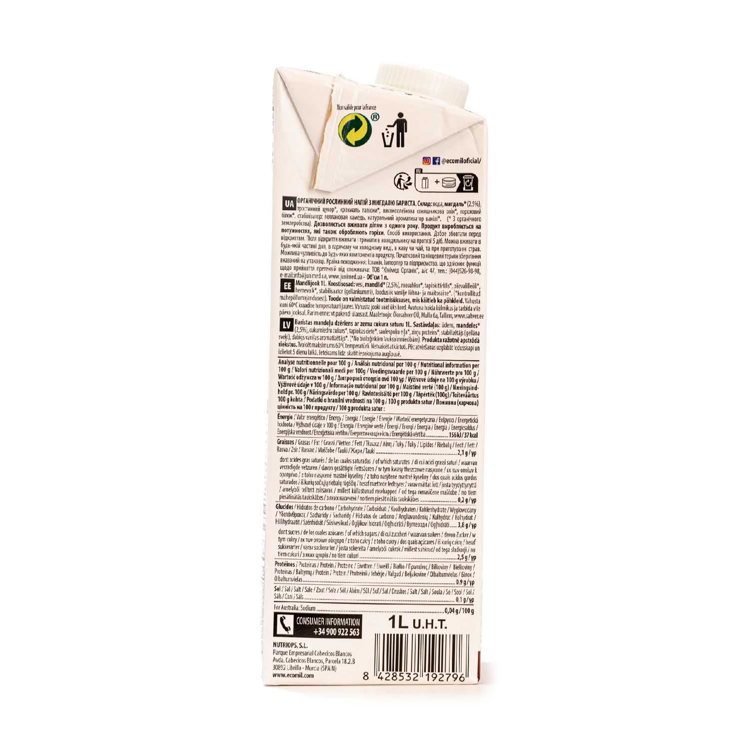 Bebida de Almendra Bio 1L Ecomil