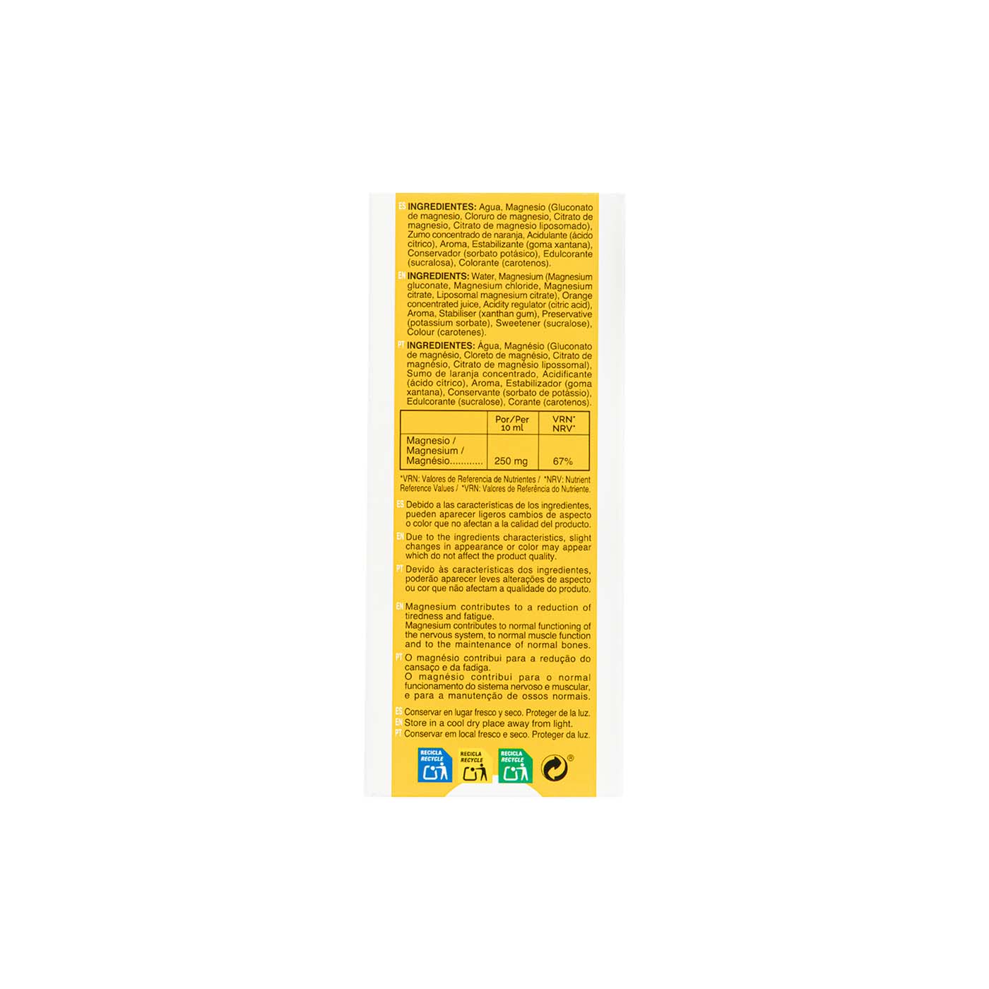 Por 10 ml: Magnesio: 250 mg (67% VRN*). *VRN: Valores de Referencia de Nutrientes.