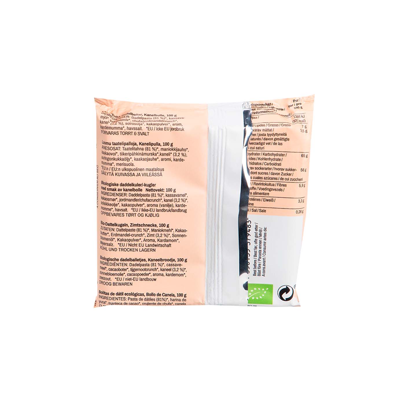 Son 9 bolitas elaboradas con pasta de dátil y canela, energéticas, 100% naturales y veganas. Estas deliciosas bolitas ofrecen una mezcla de sabores cálidos, proporcionando una fuente de energía rápida gracias a su alto contenido en fibra y nutrientes.