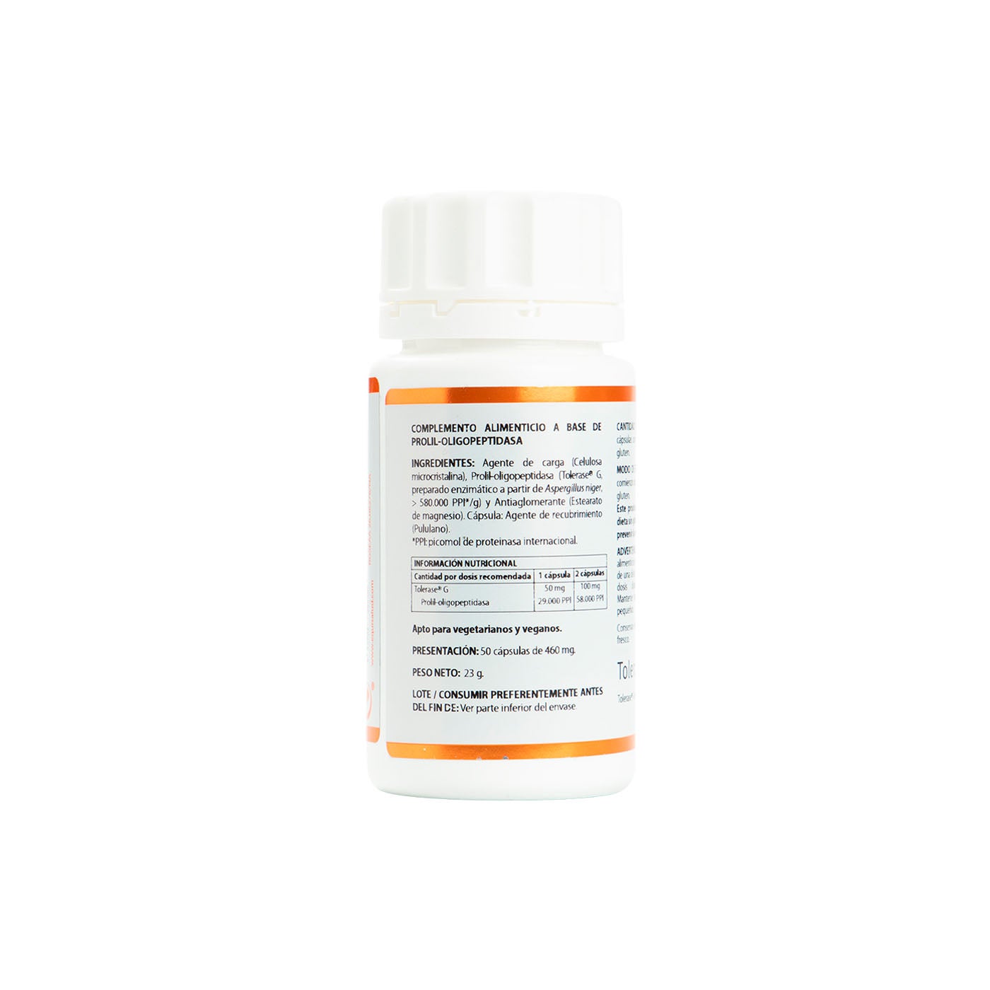 Complemento alimenticio que contiene Tolerase® G, una endopeptidasa específica de prolina o propil-oligopeptidasa, diseñada para ayudar a la digestión efectiva y segura del gluten. Esta enzima se extrae de una cepa de Aspergillus niger y se conoce como AN-PEP (Aspergillus niger-prolyl endopeptidase).