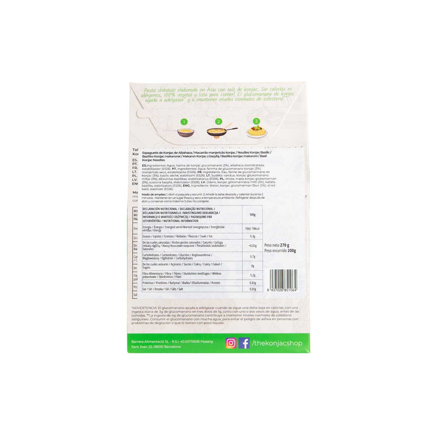 Espaguetis de Konjac con Albahaca 270g The Konjac Shop