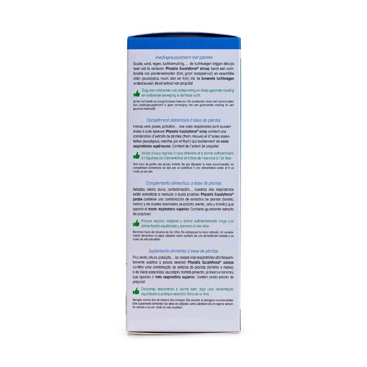 El Jarabe Eucalyforce de Physalis es 100% natural, sin azúcar y elaborado a base de propóleo, extractos hidro-alcohólicos de plantas naturales y aceites esenciales para ofrecer una sensación de alivio, calma y frescor en boca y garganta.