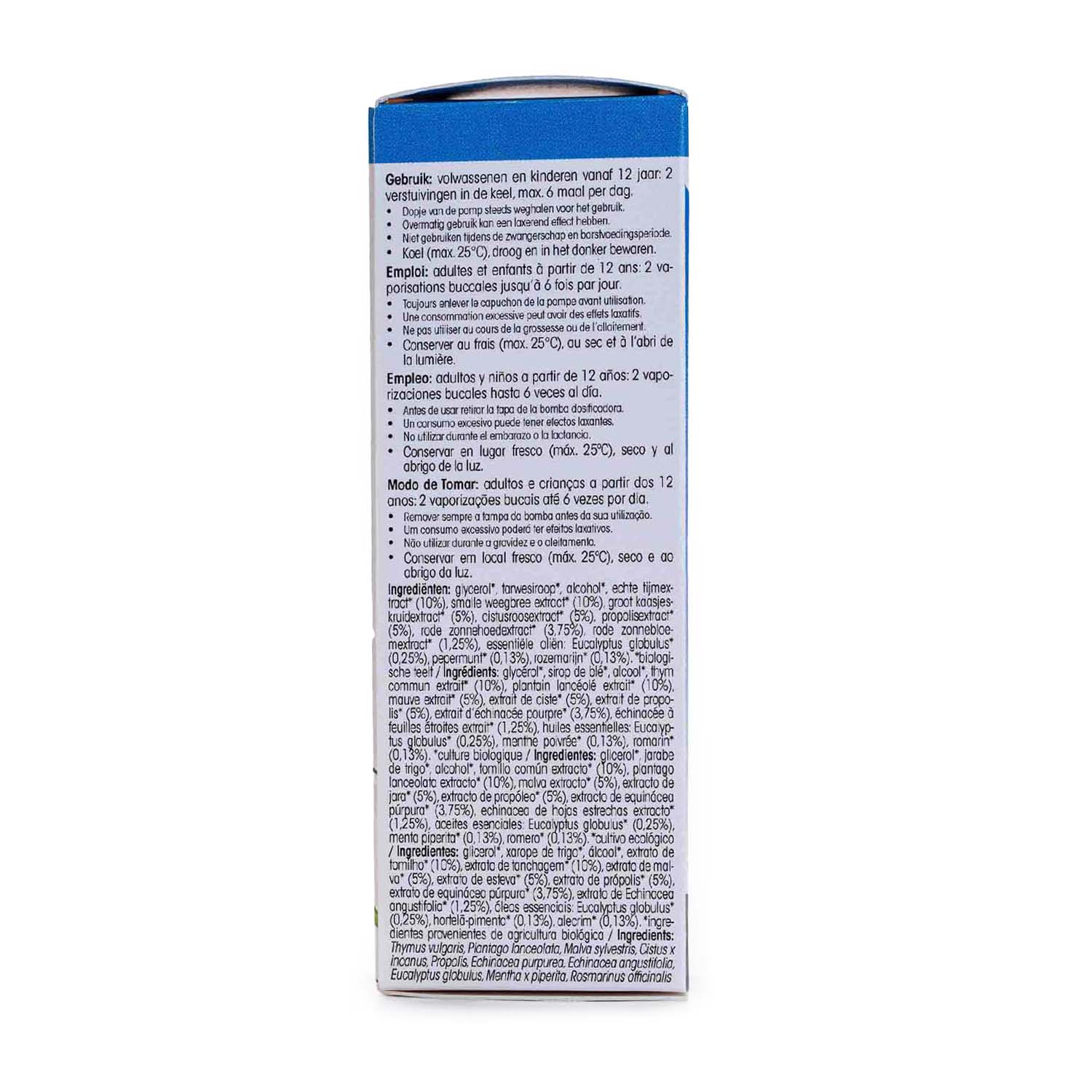 La Equinácea es una hierba que se utiliza para mejorar la salud en momentos de cambios bruscos en el ambiente. Se originó en América del Norte y ha sido utilizada por tribus nativas americanas durante siglos. La medicina tradicional adoptó esta planta a principios del siglo XX. Este suplemento dietético contiene Equinácea, que ayuda a mantener un sistema inmunológico saludable. El Tomillo es conocido por tener un efecto calmante y placentero en la garganta, faringe y cuerdas vocales. El aceite esencial de Eucalyptus es útil para el tracto respiratorio, alivia y tiene un efecto calmante y agradable. El Plantago Lanceolata ayuda a apoyar el sistema inmunológico y las defensas del cuerpo al actuar como un antioxidante. El extracto de Malva ayuda a calmar la tos seca y el cosquilleo en la garganta. El aceite esencial de Menta es beneficioso para el sistema respiratorio. El aceite esencial de Romero ayuda a defender el cuerpo y a mantener un sistema inmunológico saludable. El aceite esencial de Pino y Laurel tienen una acción antiinflamatoria en las vías respiratorias.