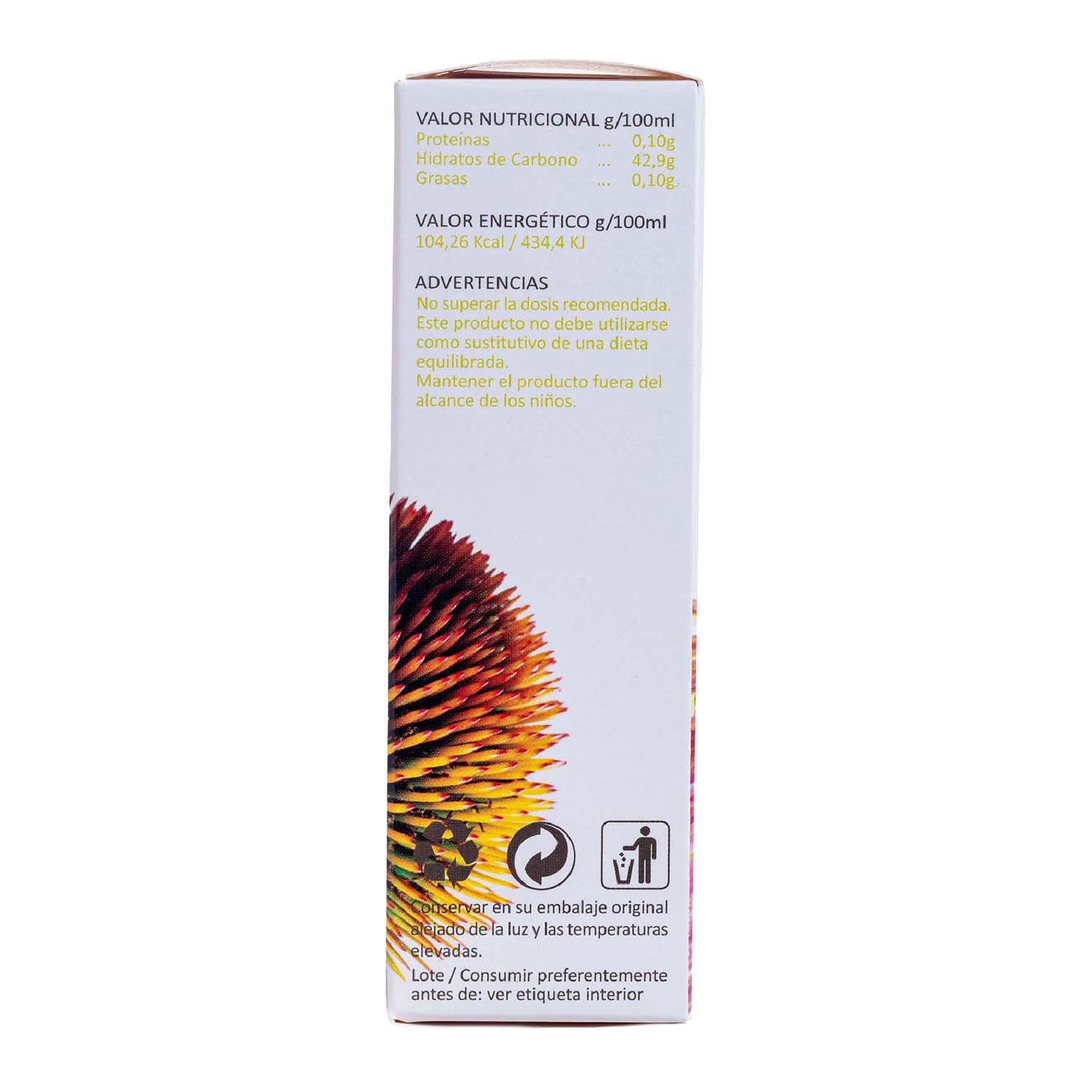 Advertencias: No superar la dosis diaria recomendada. Mantener fuera del alcance de los niños más pequeños. Los complementos alimenticios no deben utilizarse como sustituto de una dieta variada y equilibrada ni de un estilo de vida saludable. Conservar en lugar fresco y seco.