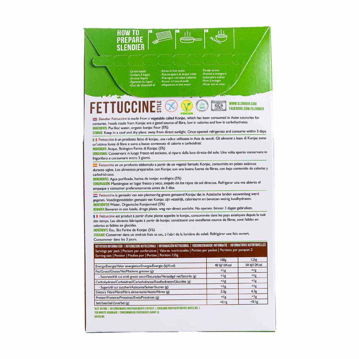 ¡Disfruta de los sabores de la pasta italiana sin remordimientos con los fettuccine de konjac de Slendier! Están hechos con konjac, un vegetal rico en fibra y bajo en calorías, lo que los convierte en la opción perfecta para aquellos que buscan una alternativa saludable a la pasta convencional. Con los fettuccine de konjac, no tienes que sacrificar el sabor o la textura que tanto amas, ¡puedes tener ambos sin remordimientos!