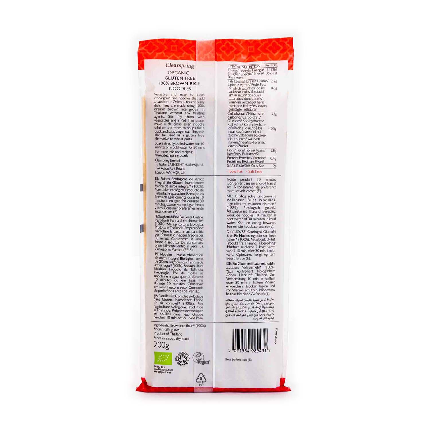 Fideos de Arroz Integral Sin Gluten 200g Clearspring