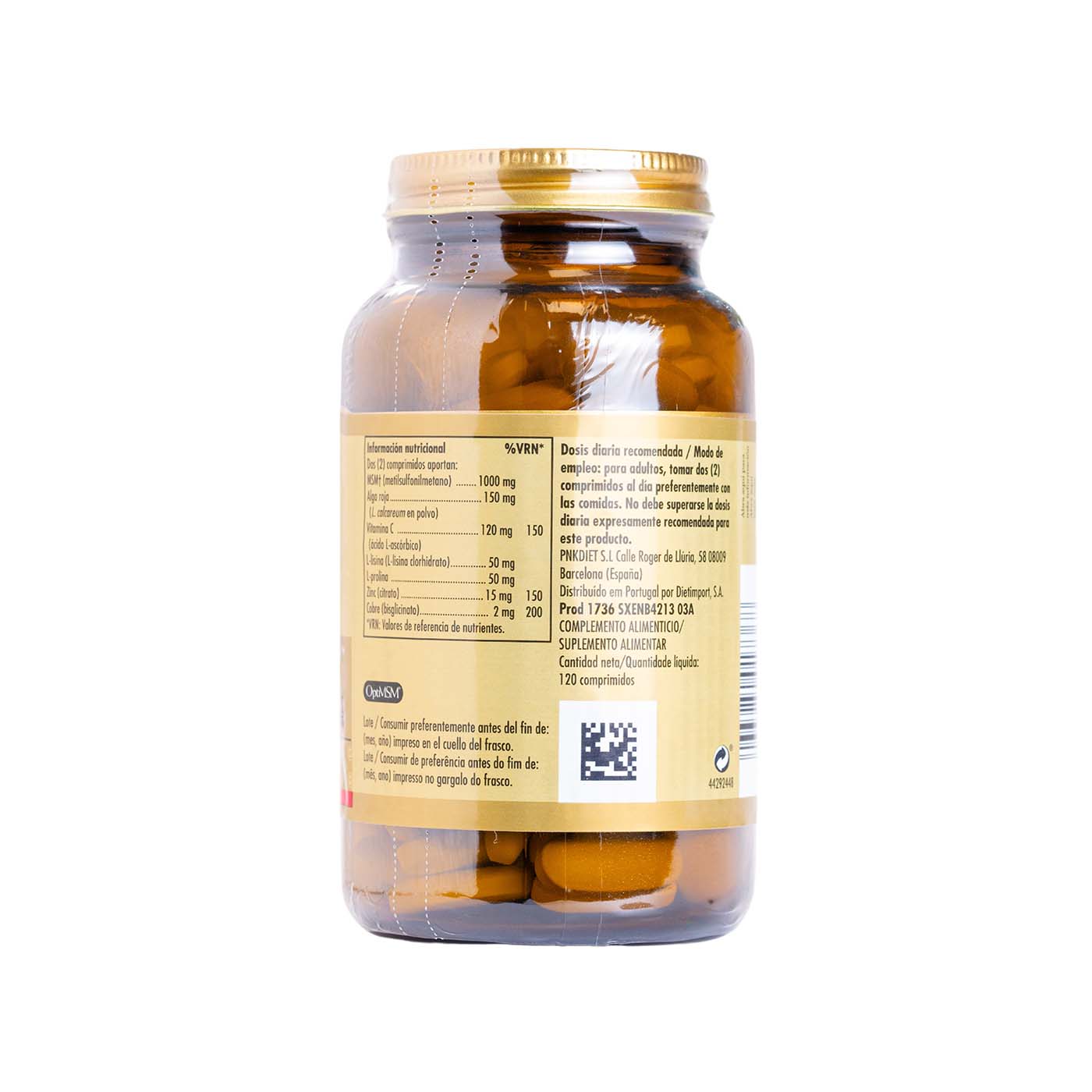 • También aporta MSM, alga roja en polvo (L. calcareum, rica en sílice), y aminoácidos (L-lisina y L-prolina)