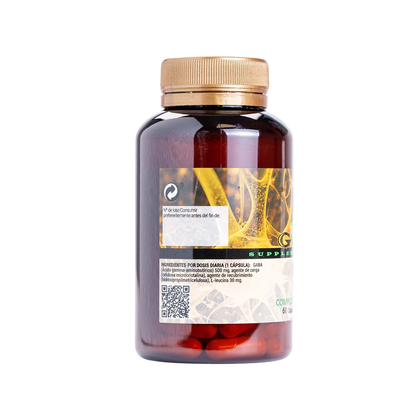 Complemento alimenticio a base de GABA (ácido gamma aminobutírico) de 500mg por cápsula. El GABA es un neurotransmisor que se genera de manera natural en el organismo y se reconoce por su papel en el funcionamiento del sistema nervioso.