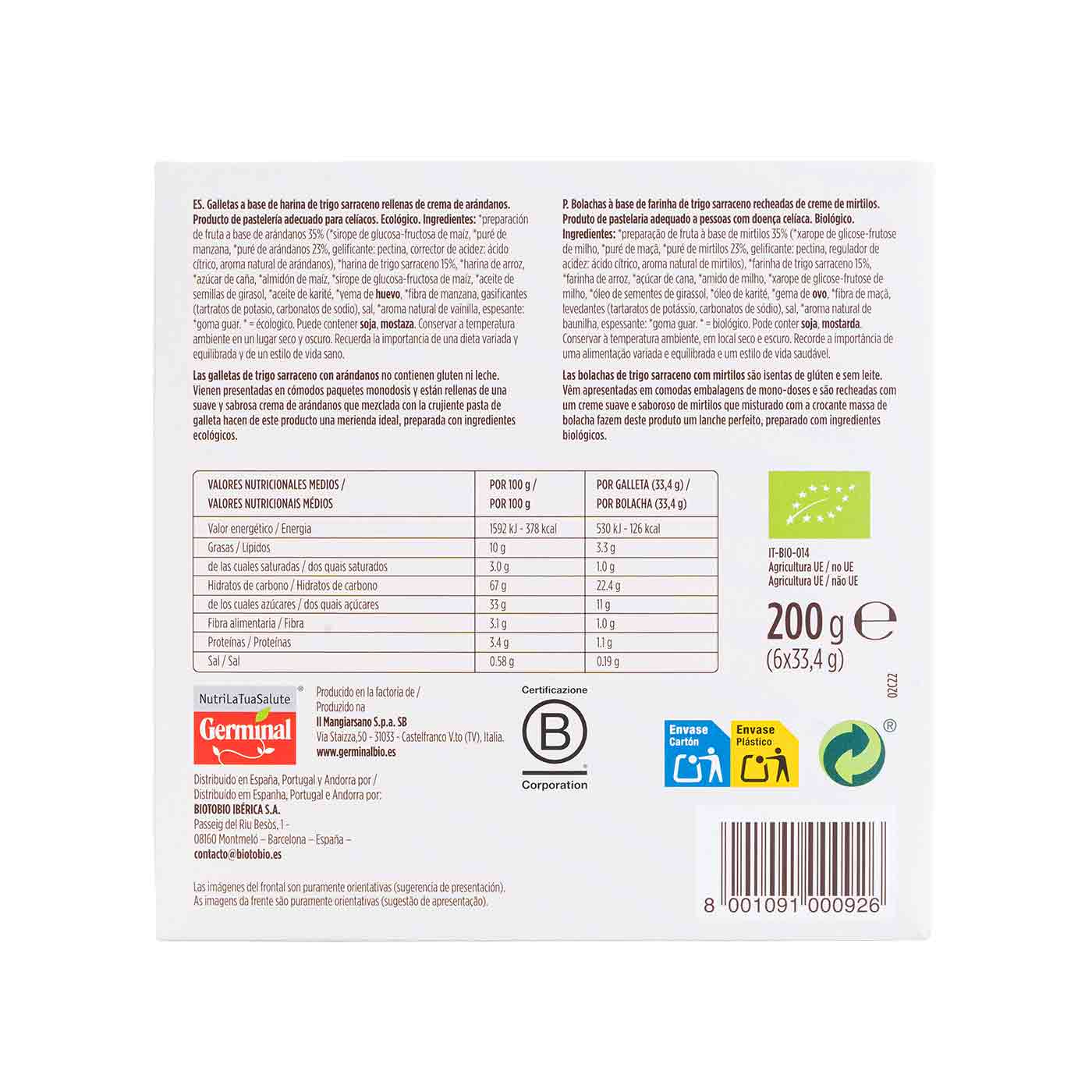 Galleta de trigo sarraceno con arándanos 199,8g Germinal