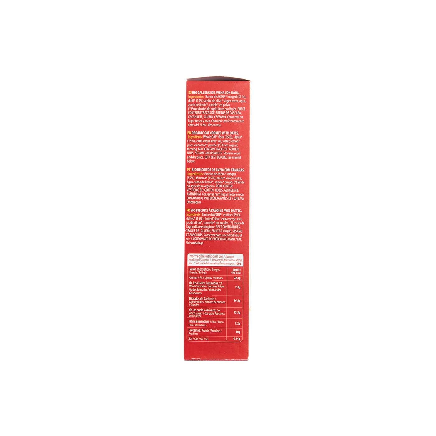 Harina de AVENA* Integral (55%), Dátil* (15%), Aceite de Oliva Virgen Extra*, Agua, Zumo de Limón*, Canela en Polvo*.