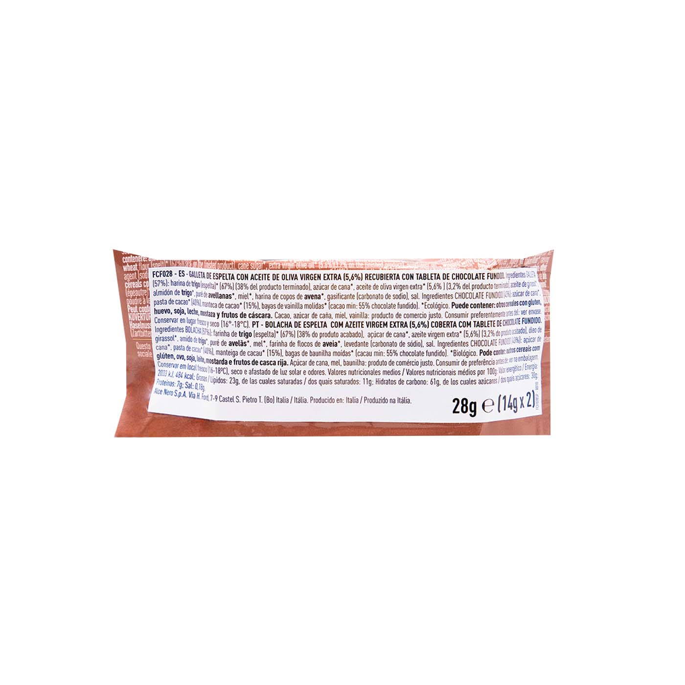 Galletas de espelta cubiertas de chocolate 28g Alce Negro