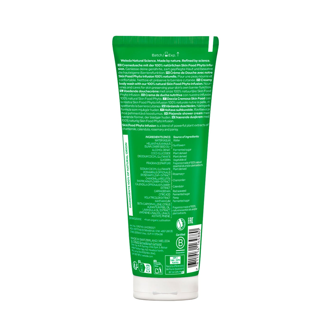 Este gel de ducha contiene extractos de plantas como caléndula, pensamiento y manzanilla, reconocidas por sus propiedades calmantes y regeneradoras. Su fórmula es rica en aceites vegetales nutritivos, que ayudan a mantener la barrera cutánea y a proteger la piel de la sequedad. Además, es apto para pieles sensibles y se puede usar diariamente sin irritar ni resecar la piel.