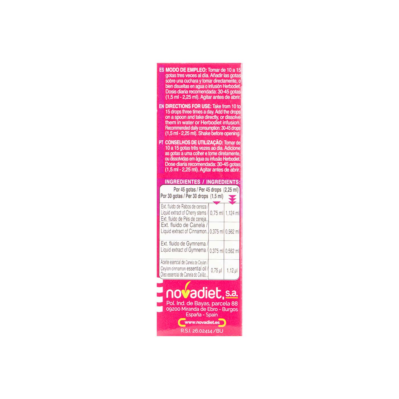 Extracto líquido de Novadiet con el poder de la Canela de Ceylán, Gymnema, Rabos de Cereza y aceite esencial de Canela.