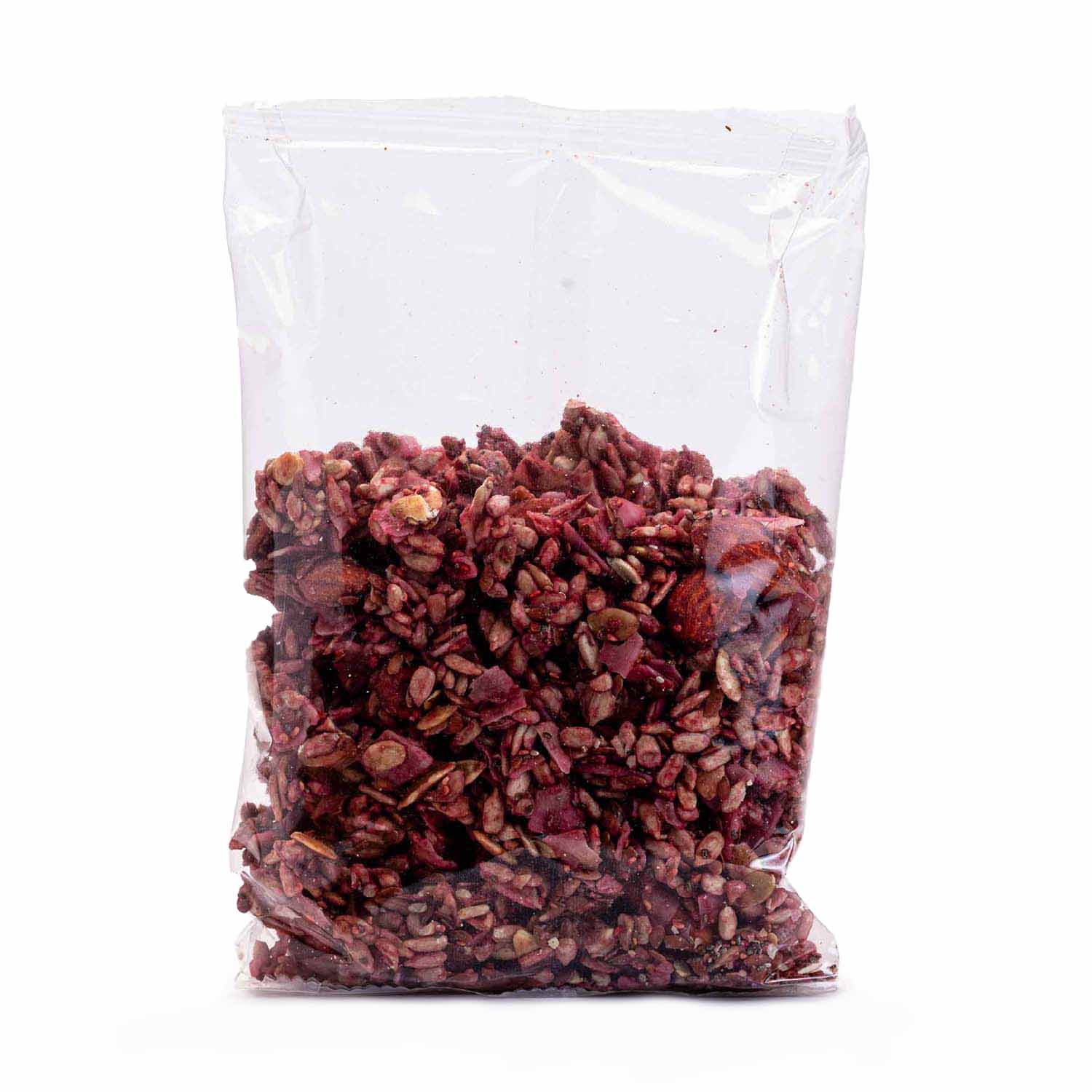 Semillas de girasol, chips de coco, semillas de lino, almendras, semillas de calabaza, semillas de chía, inulina en polvo, eritritol, frambuesas liofilizadas (5%)