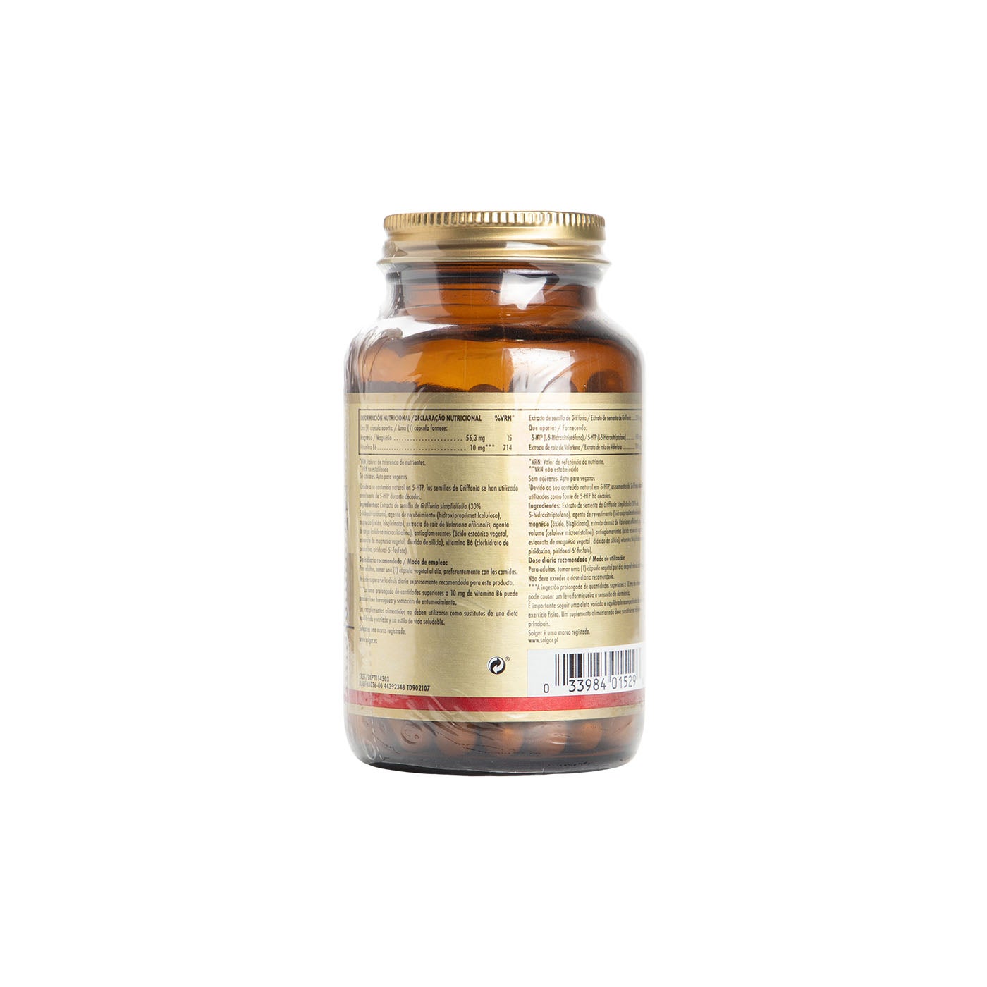 Griffonia 5-HTP Complex de Solgar es un complemento alimenticio elaborado a base de extracto natural de semillas de Griffonia simplicifolia, una planta africana rica en 5-HTP (5-hidroxitriptófano), combinado con magnesio, valeriana y vitamina B6.