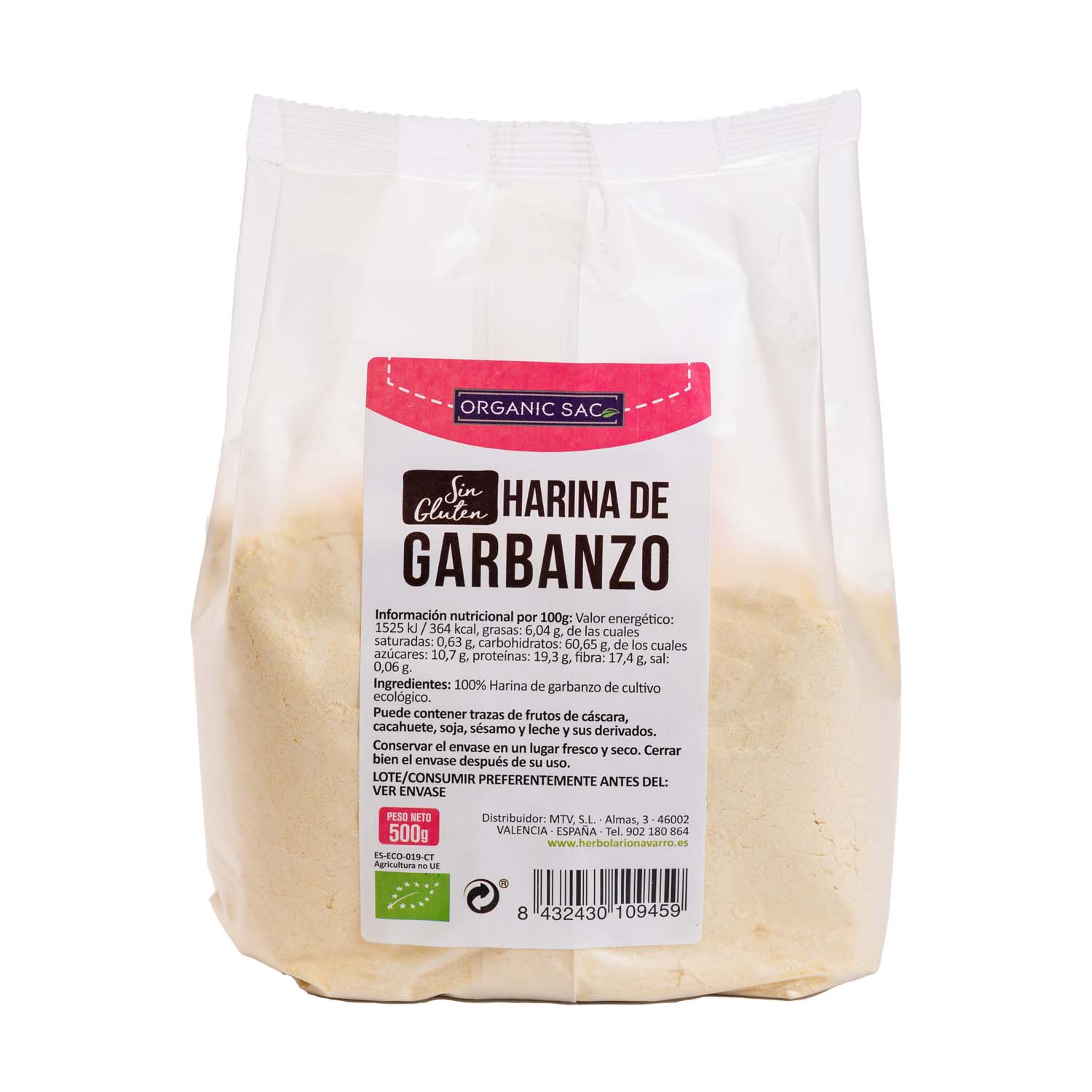 Harina de garbanzo sin gluten 500g Organic Sac
