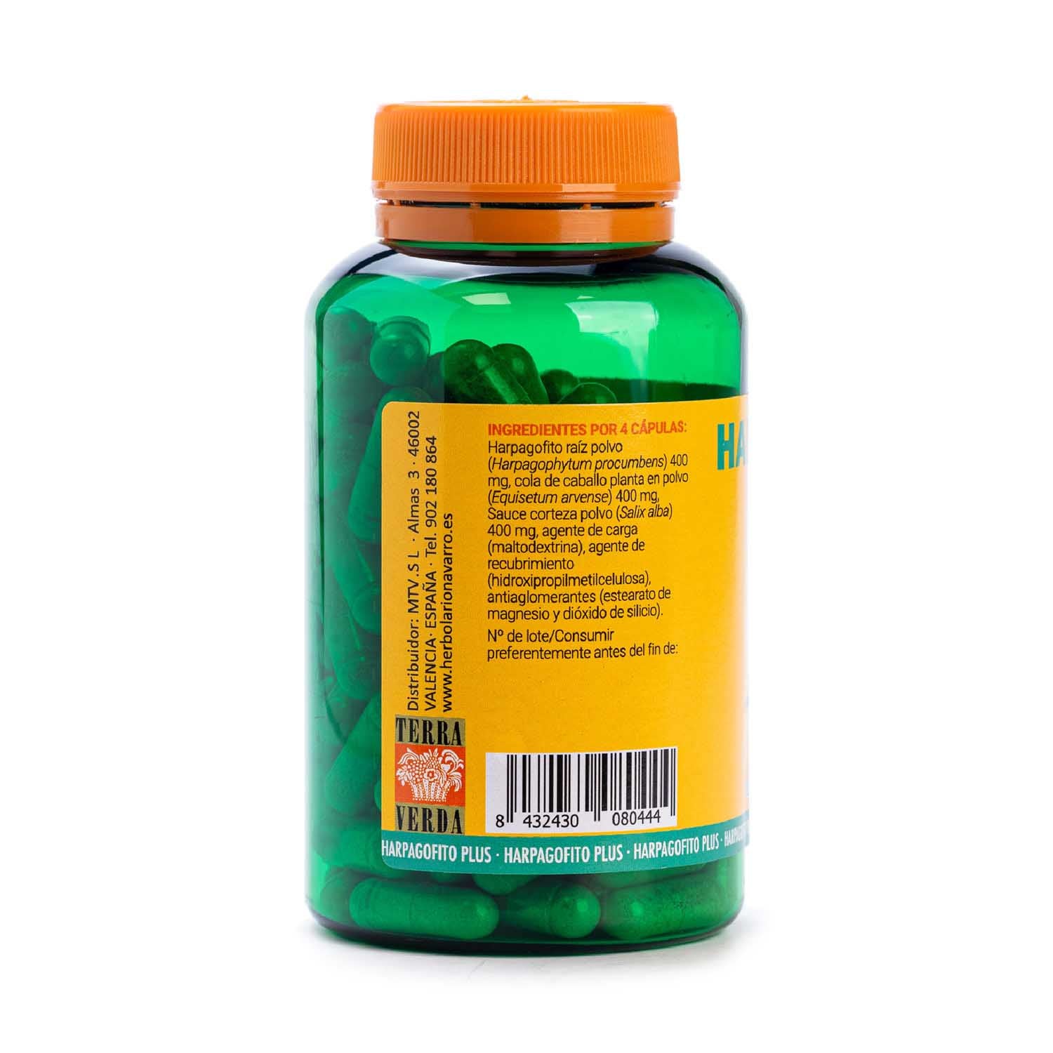 El Harpagofito Plus de Terra Verda, complementado con cola de caballo y corteza de sauce, contiene 120 cápsulas aptas para veganos y de fácil consumo por el suave recubrimiento de sus comprimidos.
