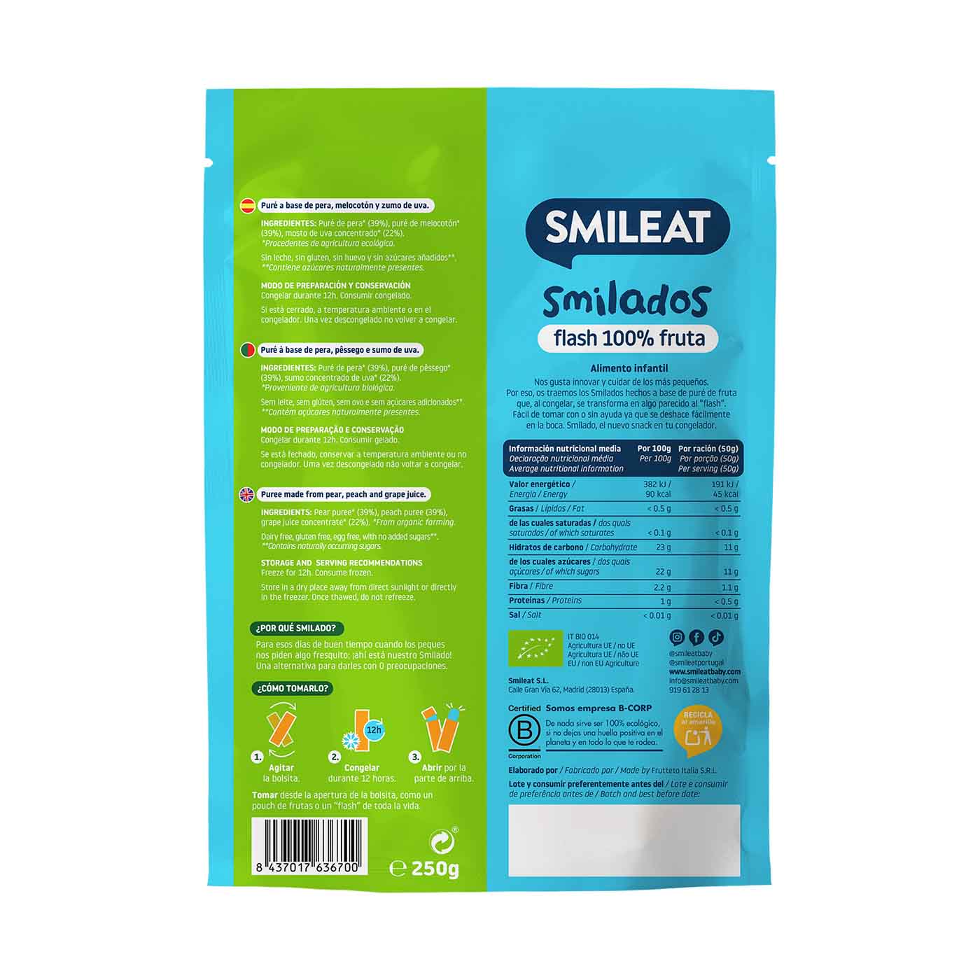 Los Smilados son helados en forma de flash con un contenido de 100% fruta, sin azúcares añadidos. Son una excelente opción para introducir la fruta de manera saludable y original en la dieta de los pequeños. A partir de 6 meses.