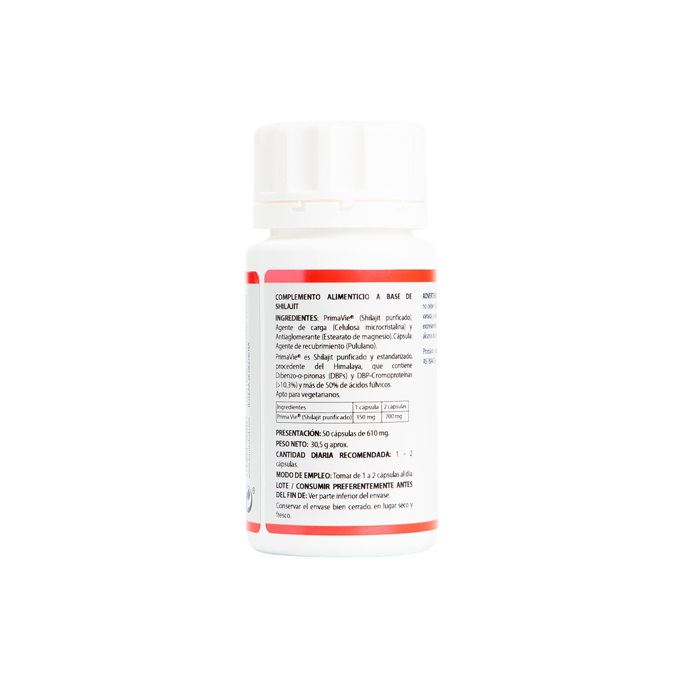 Por cápsula: PrimaVie® (shilajit purificado), 350 mg.