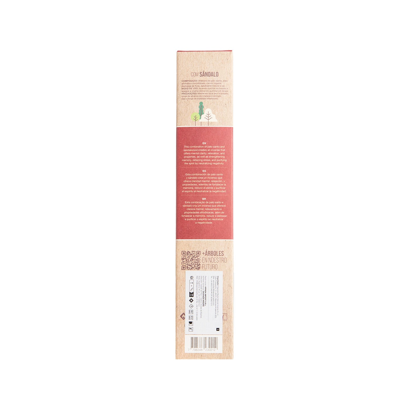 Hecho 100% de puro Palo Santo, esencia de sándalo y aglutinantes a base de plantas.