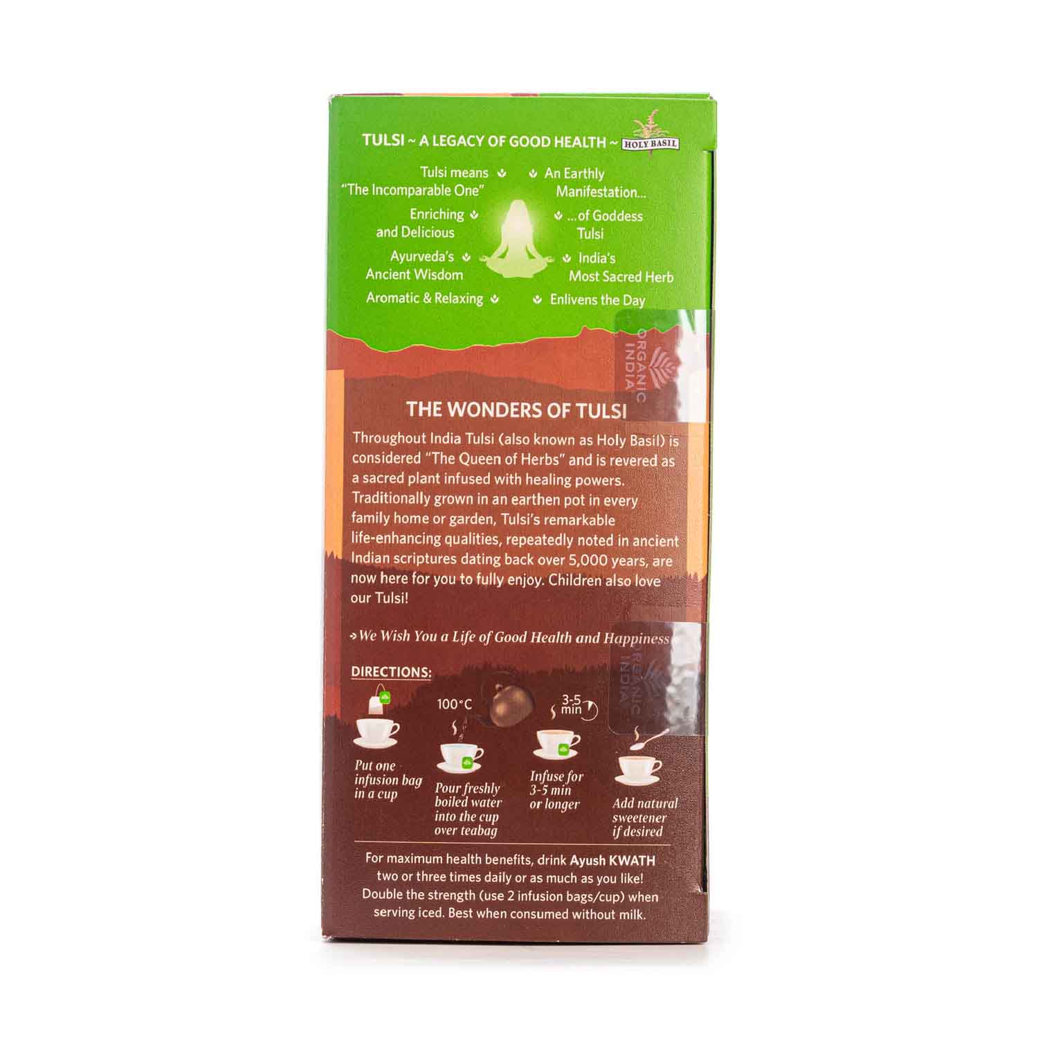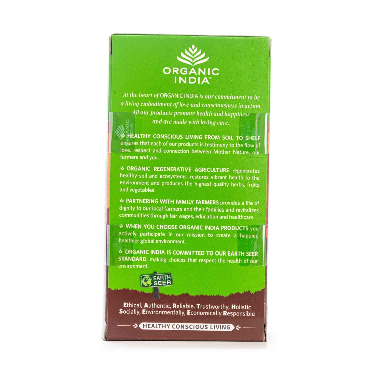 Infusión ayurvédica Ayush Kwath de Organic India. Mezcla de Tulsi con Canela, Jengibre y Pimienta Negra