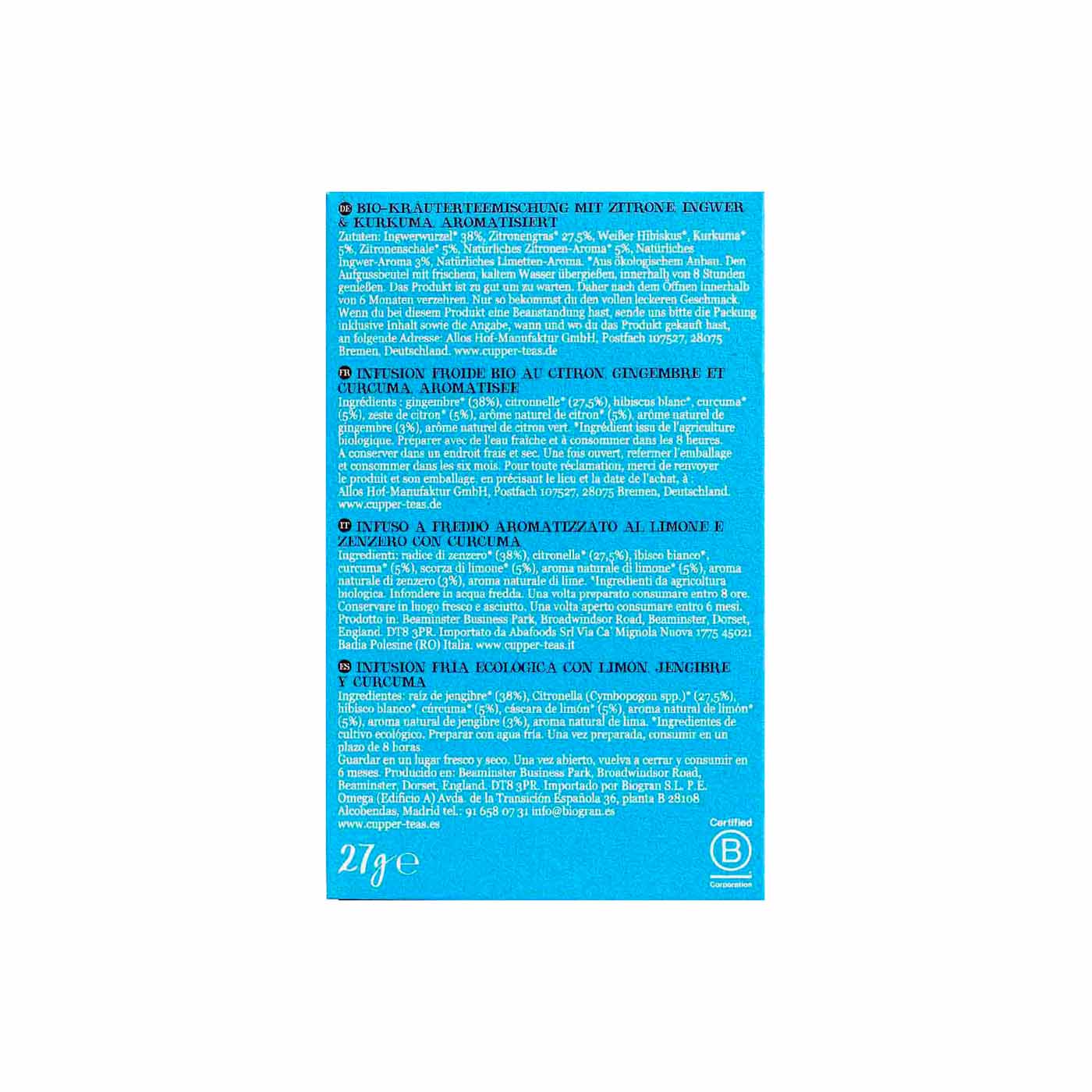Infusión Fría de Limón, Jengibre y Cúrcuma 10 filtros Cupper