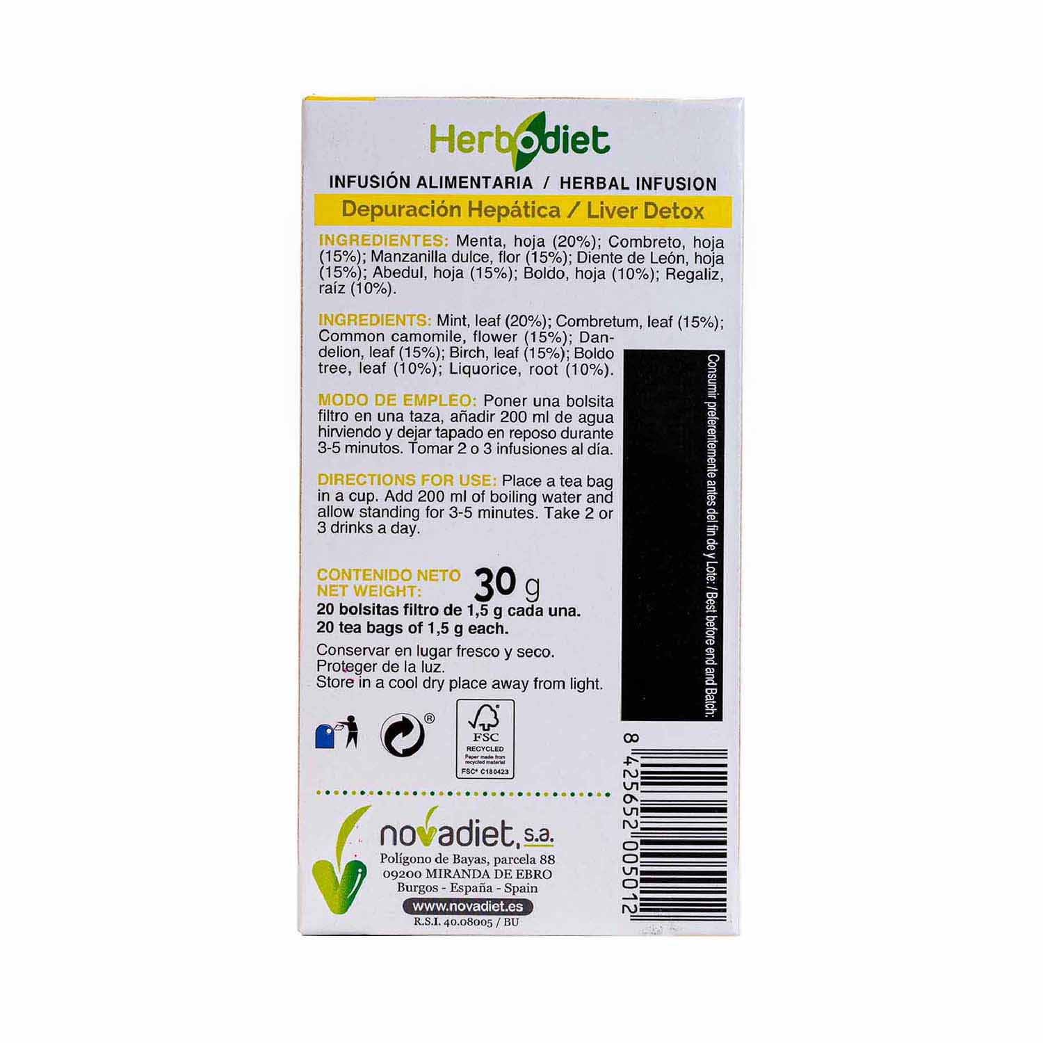 Infusión herbodiet hepática 20 filtros Novadiet