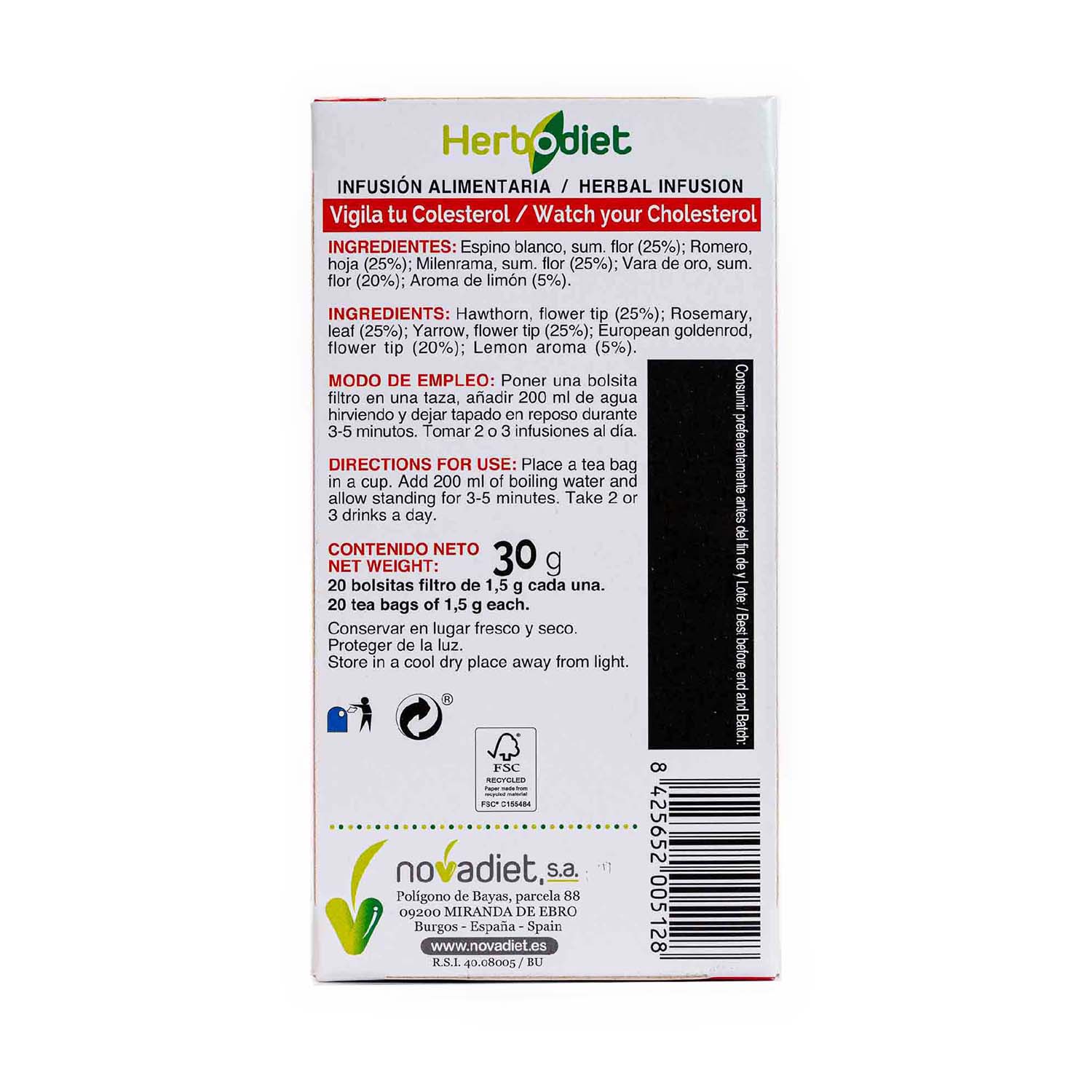 Infusión herbodiet vigila tu colesterol 20 filtros Novadiet