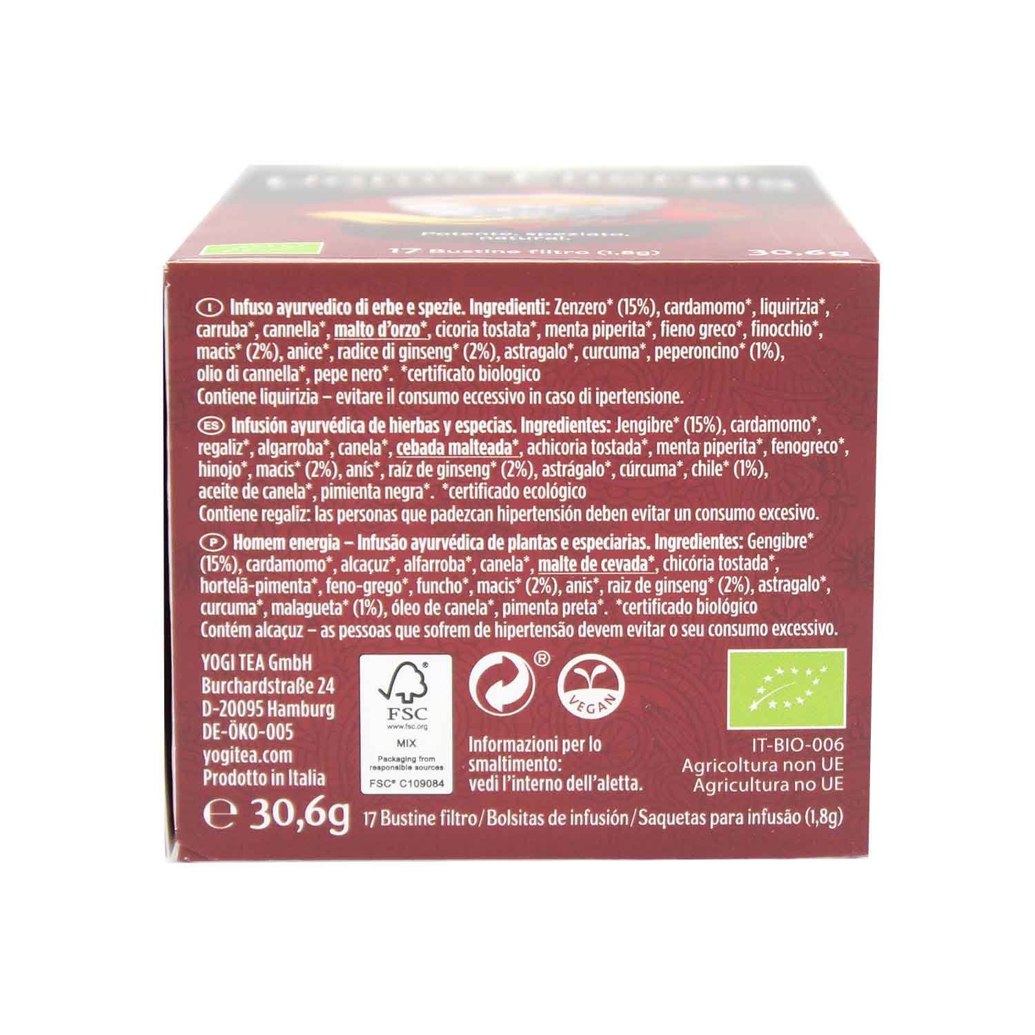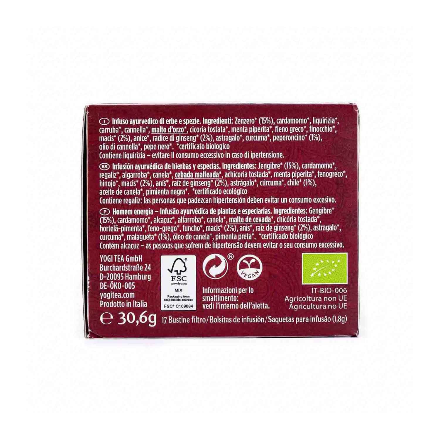 Infusión Hombre Energía 17Filtros Yogi Tea