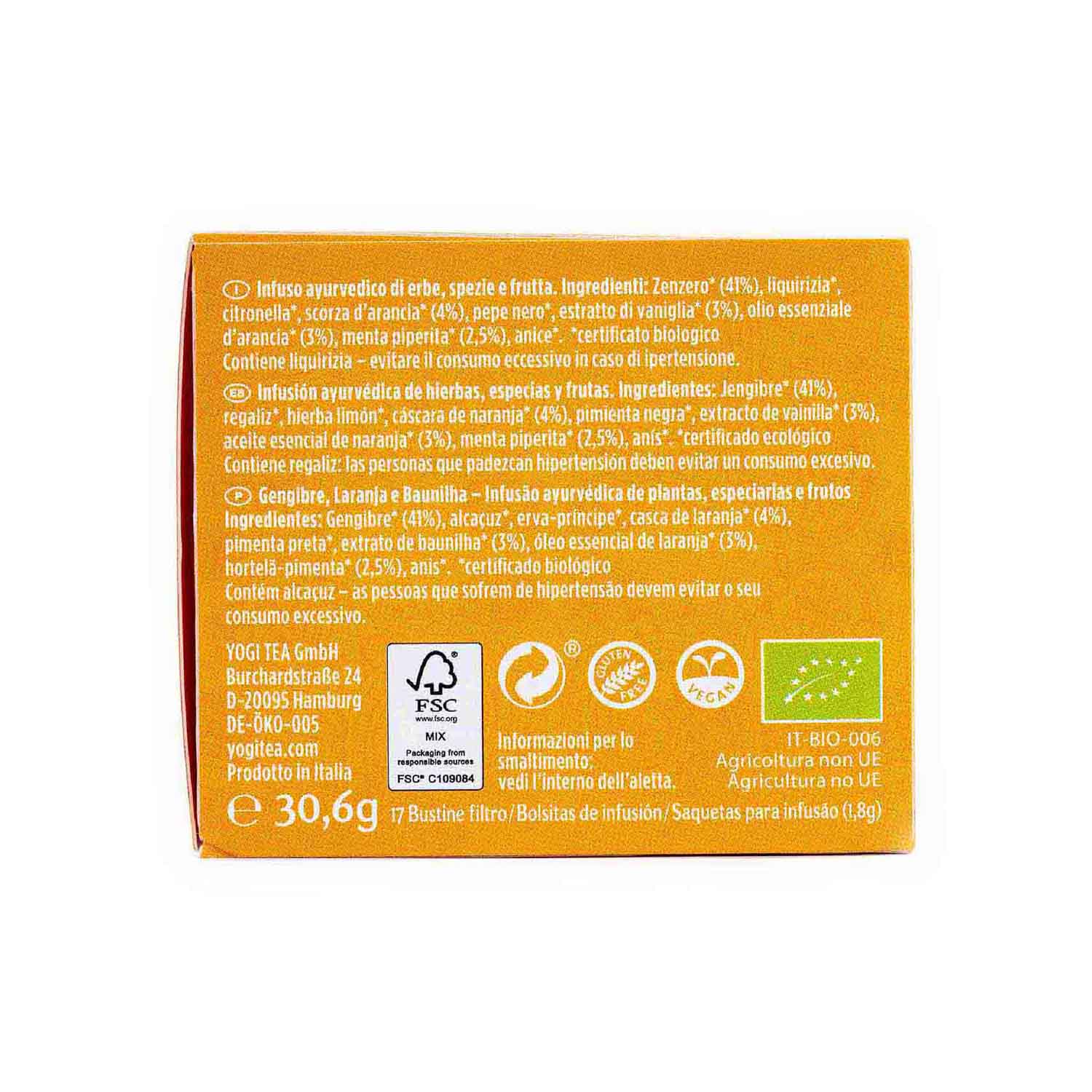 Infusión Jengible Naranja y Vainilla 17 filtros Yogi Tea