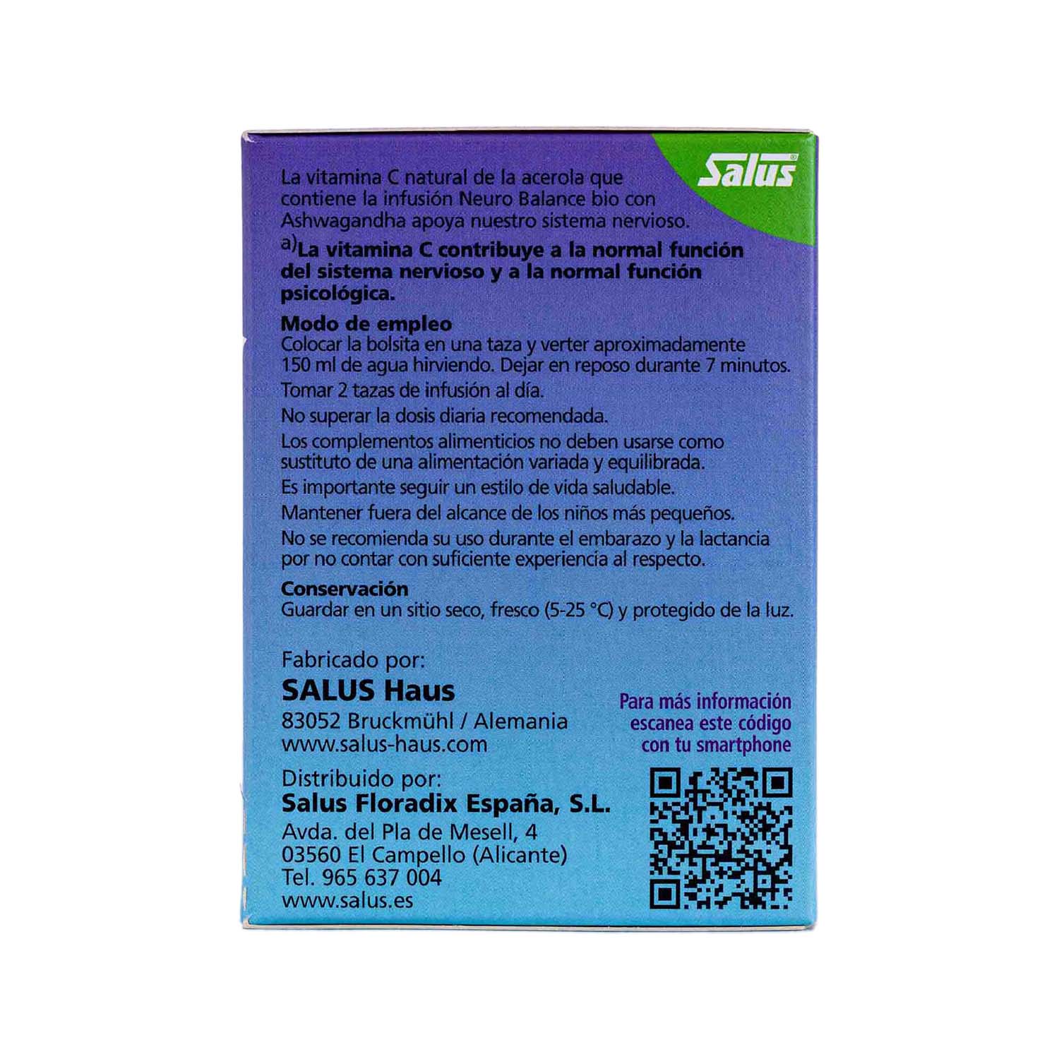 Infusión Neuro Balance de Salus con raíz de Ashwagandha. Cómoda preparación en bolsitas.