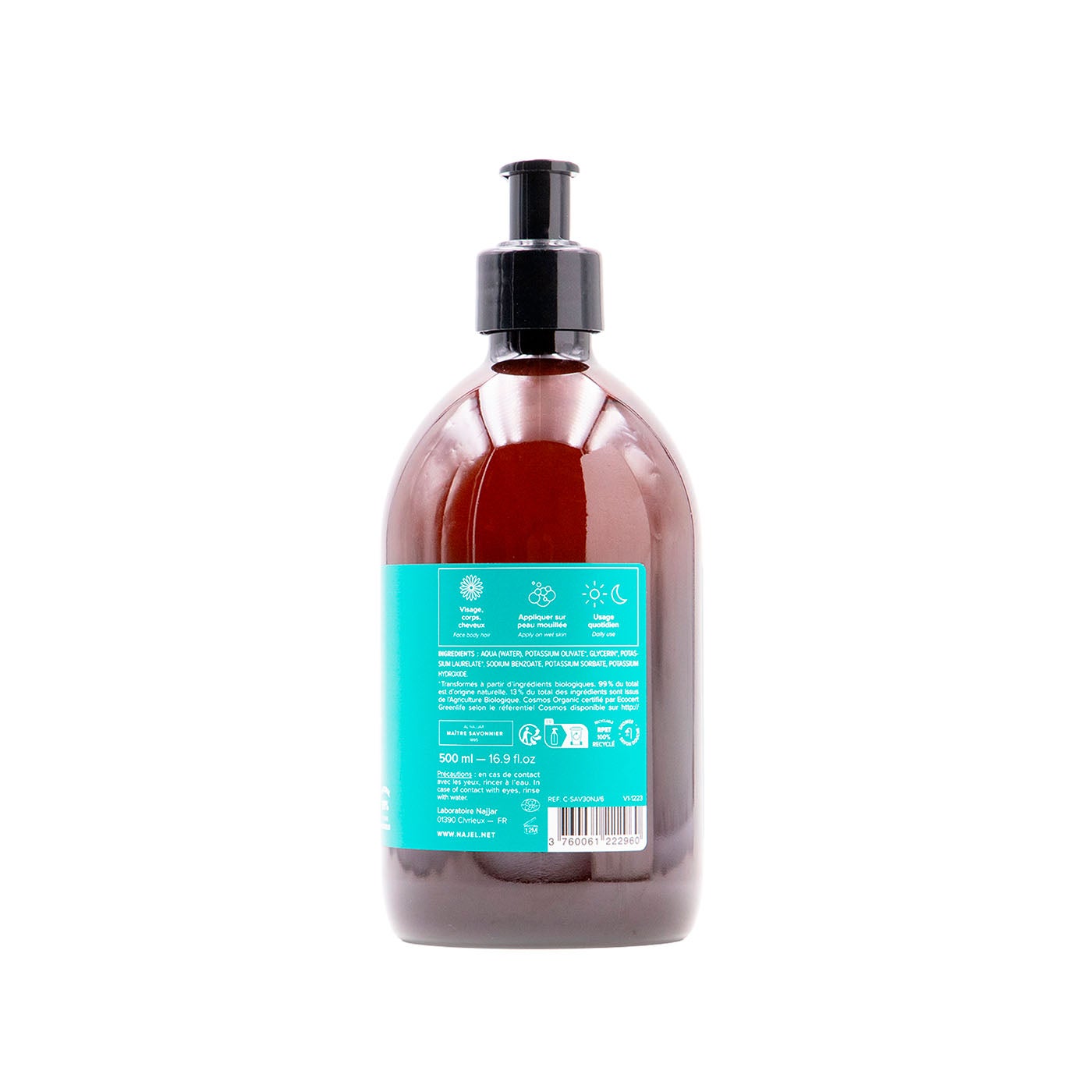 Jabón Alepo 5% Aceite de Oliva y Bayas de Laurel 500ml Najel