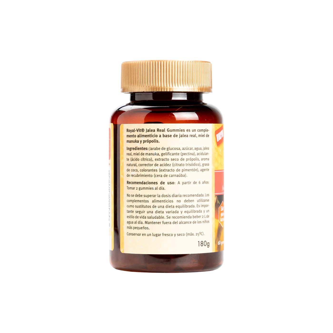 Jarabe de glucosa, azúcar, agua, jalea real, miel de manuka, gelificante(pecticina), acidulante(ácido cítrico), extracto seco de própolis, aroma natural, corrector de acidez(citrato trisódico), grasa de coco, colorantes(extracto de pimentón), agente de recubrimiento (cera de carnaúba).