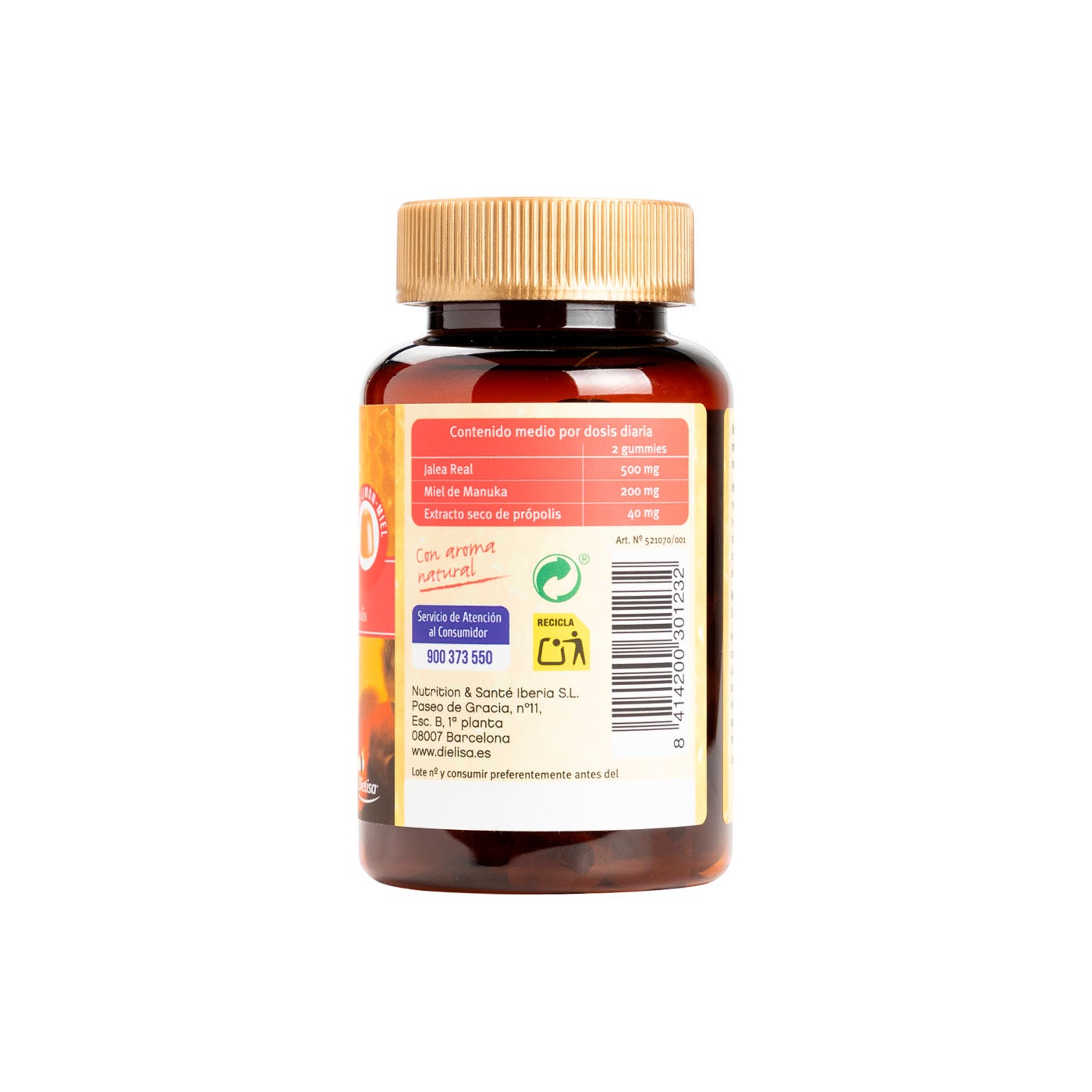 Complemento alimenticio que combina la jalea real, una sustancia producida por las abejas obreras, con gominolas. La jalea real es conocida por ser una sustancia nutritiva y rica en vitaminas, minerales y aminoácidos. Al combinar la jalea real con gominolas, Dietisa ofrece una forma atractiva de consumir este superalimento, especialmente para aquellos que prefieren no consumir la jalea real en su forma natural.