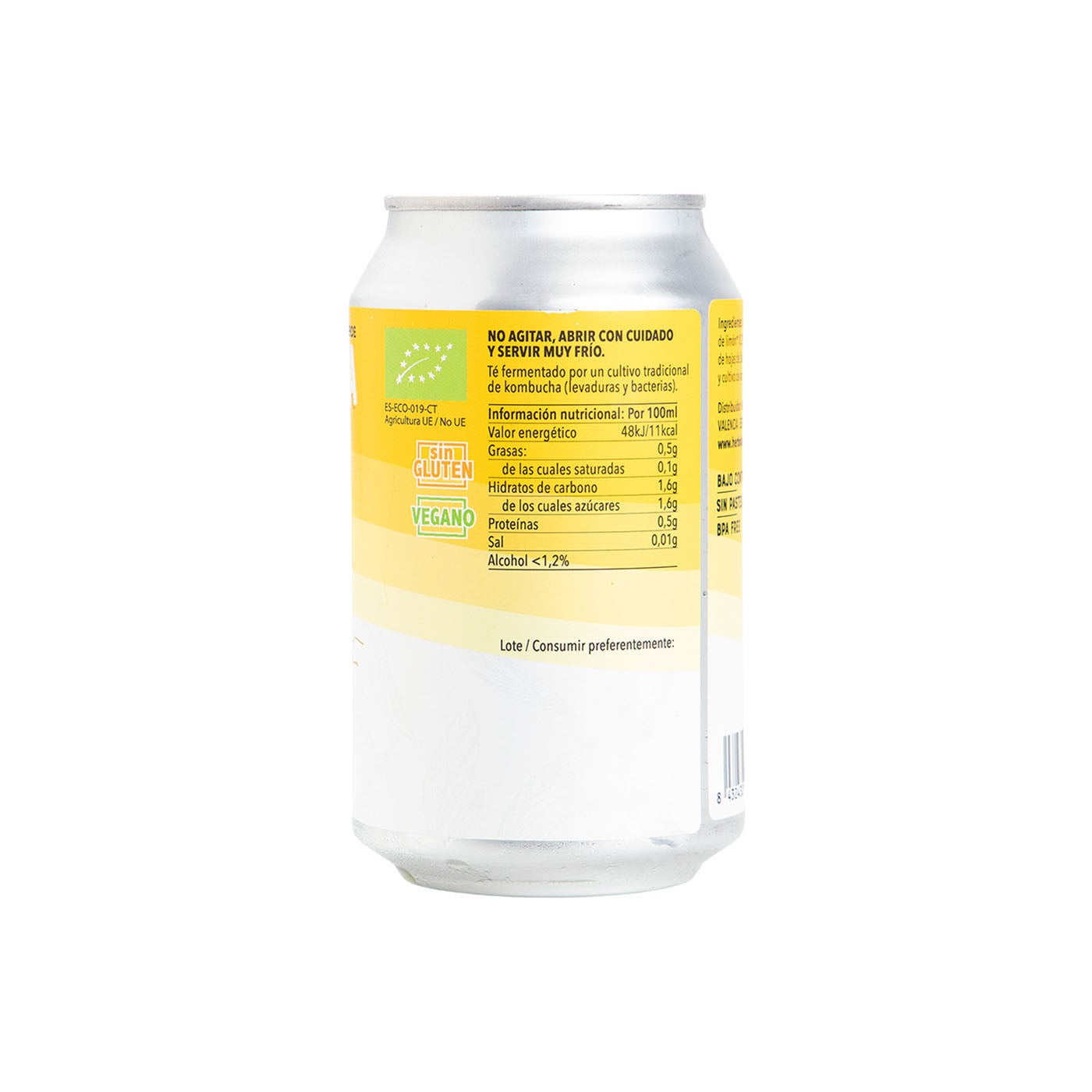 Agua, azúcar de caña*, jengibre* (0,45%), zumo de limón* (0,20%), hierba de limón*, té verde* (0,09%), infusión de hojas de Stevia rebaudiana bertoni*, aroma natural de limón* y cultivo de Kombucha. (*) produccción ecológica.