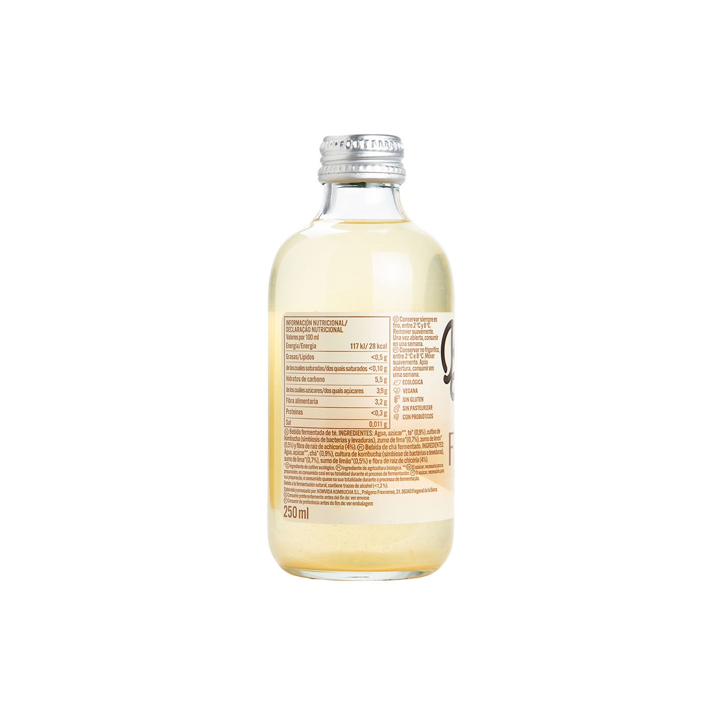 Es recomendable conservar la kombucha refrigerada entre 2 °C y 8 °C. Una vez abierta consumir en una semana.