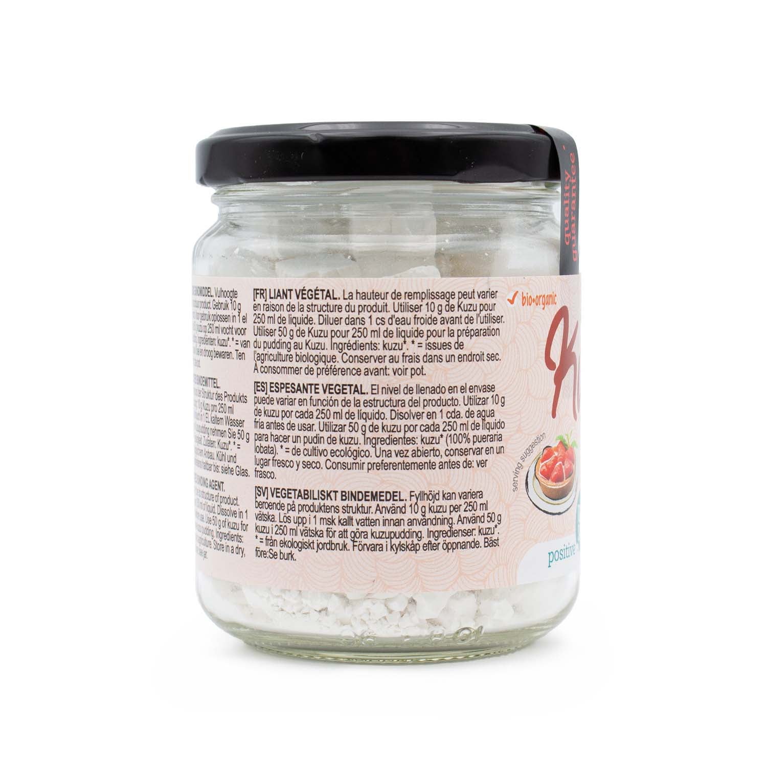 Para utilizar el kuzu, recomendamos añadir de 1 a 1,5 cucharaditas de tamaño café por cada taza de líquido que desees espesar. Es importante mezclar el kuzu con agua fría antes de usarlo, asegurándote de disolverlo por completo para evitar grumos. Una vez que la mezcla esté lista, puedes agregarla al líquido que deseas espesar, ya sea una sopa, salsa o postre. Si deseas hacer un pudin de gelatina con kuzu, la proporción recomendada es de aproximadamente 2 cucharadas de kuzu por cada 250 ml de líquido. Mezcla el kuzu con un poco de agua fría hasta que se disuelva por completo y luego agrega esta mezcla al líquido que utilizarás para hacer el pudin. Asegúrate de calentar la mezcla a fuego lento, revolviendo constantemente hasta que espese y adquiera la consistencia deseada. Recuerda ajustar las cantidades de kuzu según tus preferencias personales y la consistencia que deseas lograr en tu preparación.