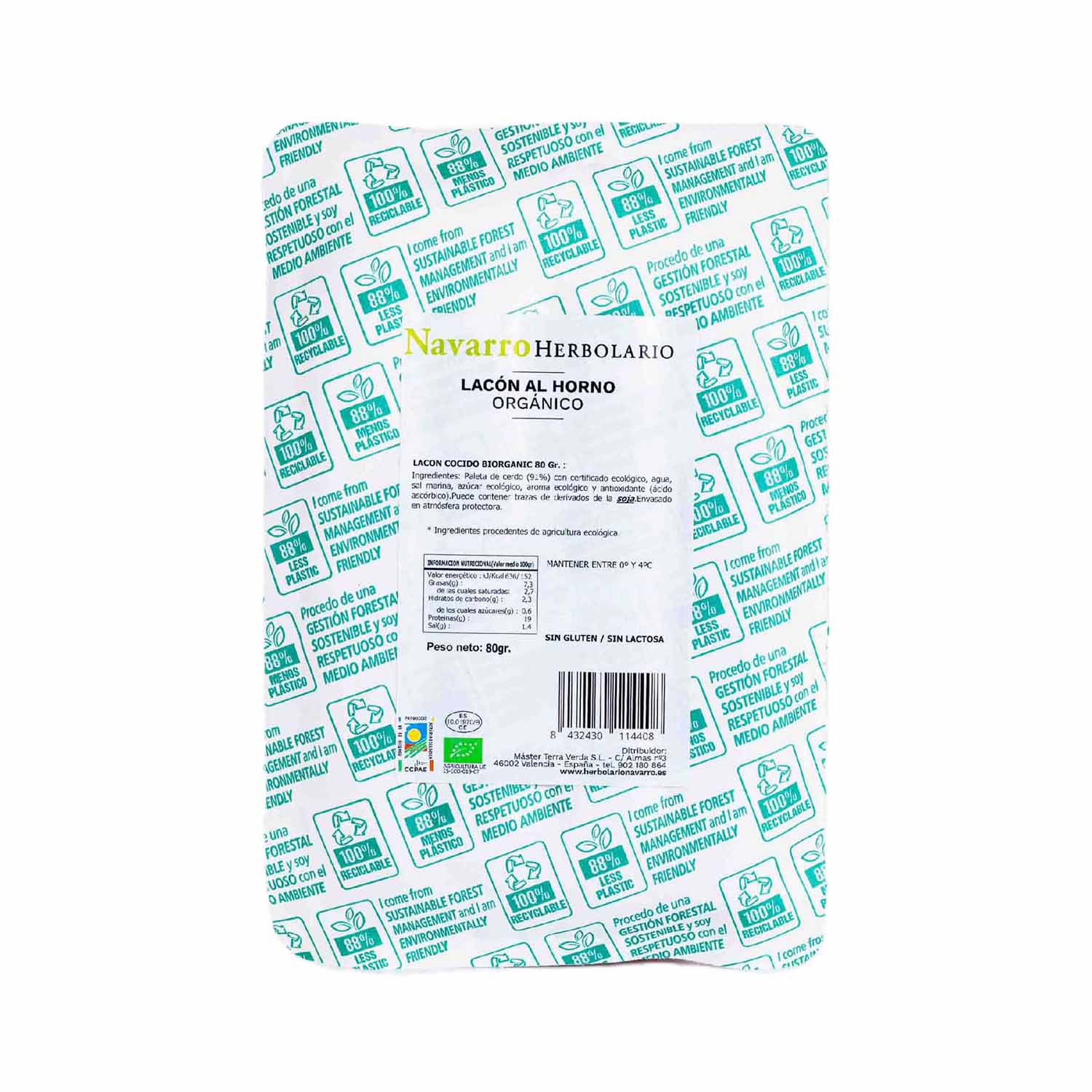 El Lacón al Horno Ecológico de Herbolario Navarro es una deliciosa paleta de cerdo con un contenido mayoritario del 91%. Elaborado con certificación ecológica, este producto garantiza la calidad y la procedencia natural de sus ingredientes. Además, es apto para personas intolerantes al gluten y a la lactosa, y no contiene organismos modificados genéticamente (OGM). Su envase de fácil apertura, mayoritariamente compuesto de papel 100% reciclable, lo hace práctico y respetuoso con el medio ambiente.