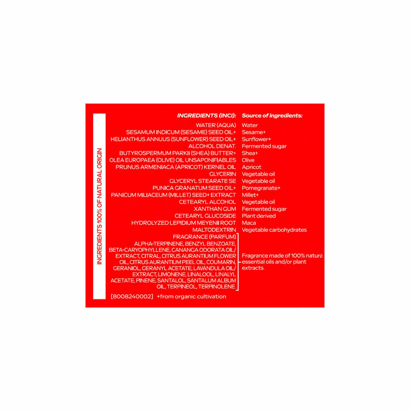 La leche corporal de granada produce un cuidado femenino y acción anti-edad. Tienes un aroma que produce una profunda sensación de bienestar. Es de rápida absorción y rica en antioxidantes, estimula la renovación celular, reafirma y mejora la elasticidad.Testada dermatológicamente. Sin conservantes, colorantes, perfumes sintéticos, ni sustancias de origen petroquímico. Apta para veganos.