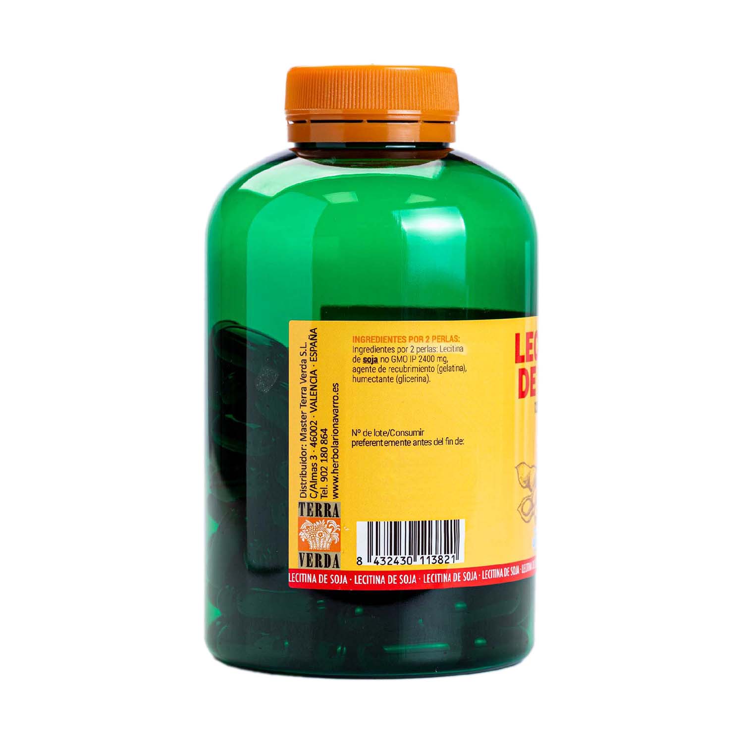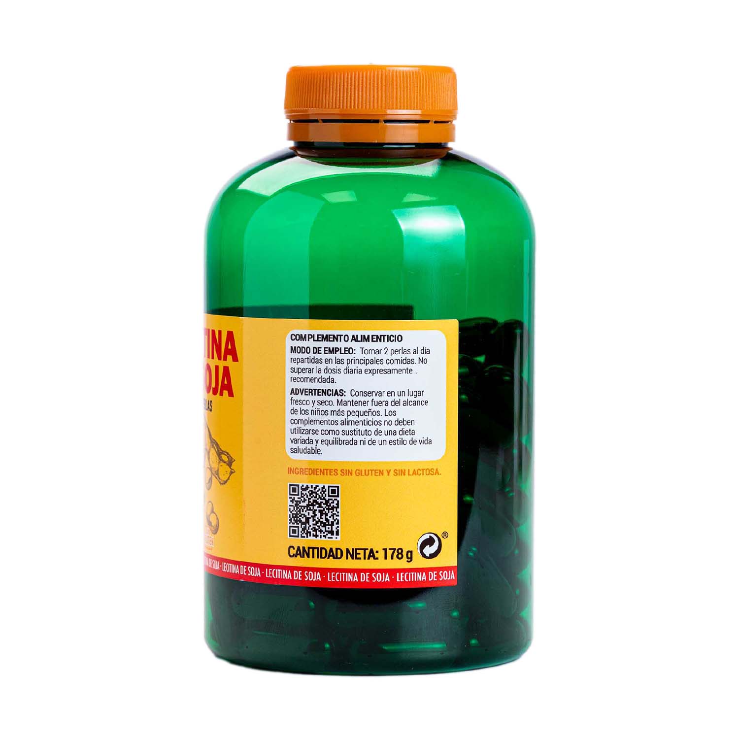 Complemento alimenticio que contiene 1200 mg de lecitina de soja no modificada genéticamente (GMO IP) por cápsula. Sin gluten y sin lactosa.