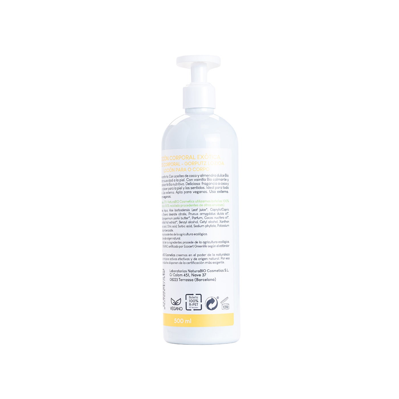 La loción Corporal Exótica Vainilla y Coco de Naturabio ofrece una gran experiencia sensorial, gracias a su fragancia exótica y a sus propiedades hidratantes que nutren intensamente y dejan la piel suave.