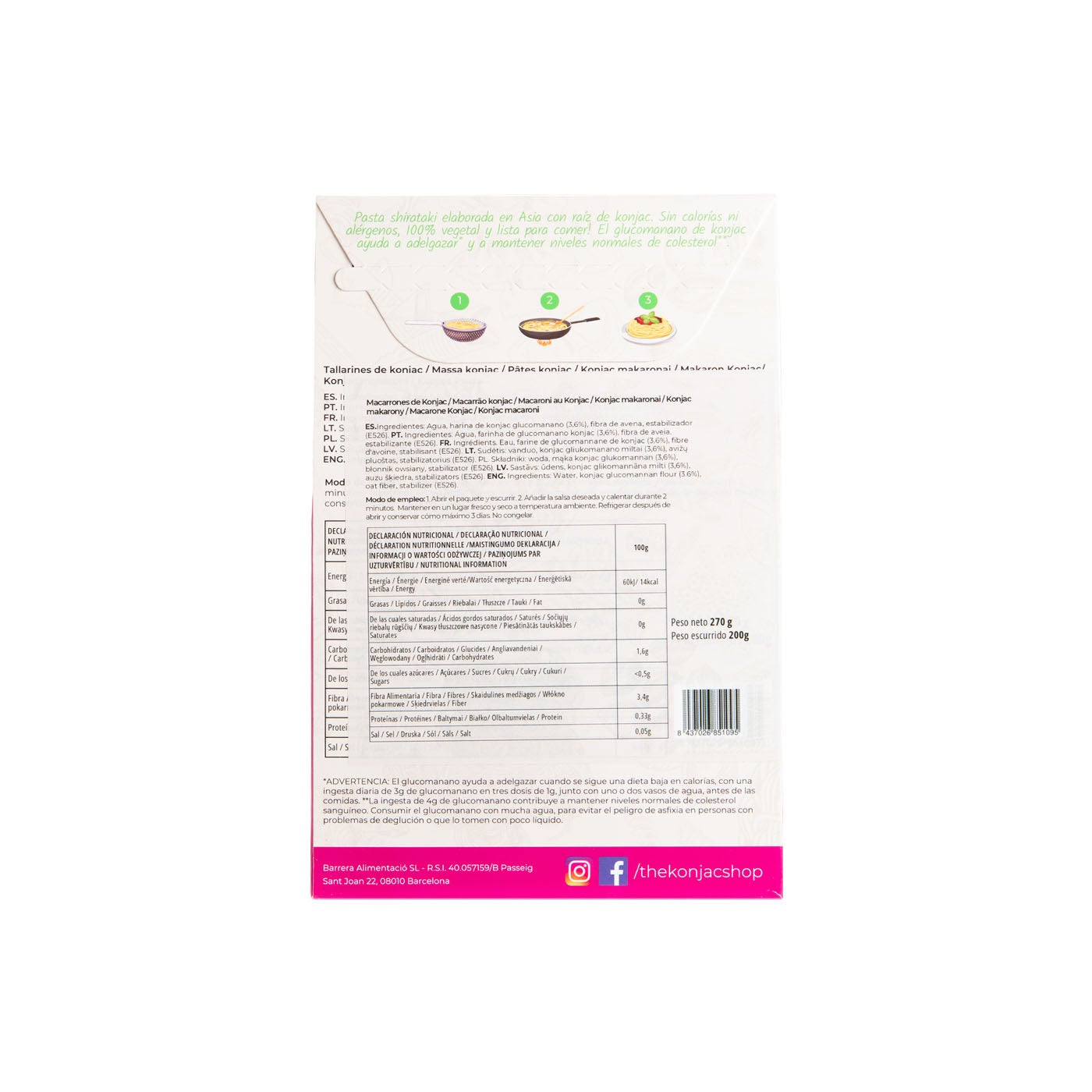 Los Macarrones de konjac de The Konjac Shop son los sustitutos perfectos de los macarrones tradicionales. Su textura es muy parecida y podrás comer pasta independientemente de tu dieta (adelgazamiento, keto, diabetes, vegana, dukan, hipocalórica, etc.)