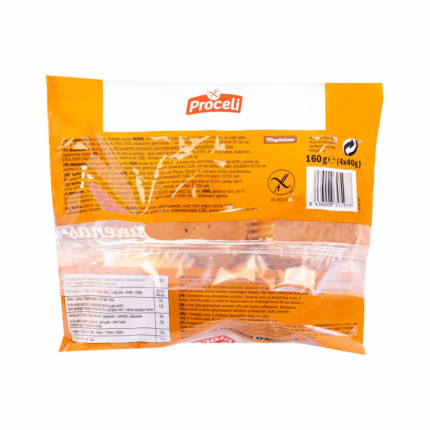 Magdalenas sin Gluten 160g (4x40g) Proceli