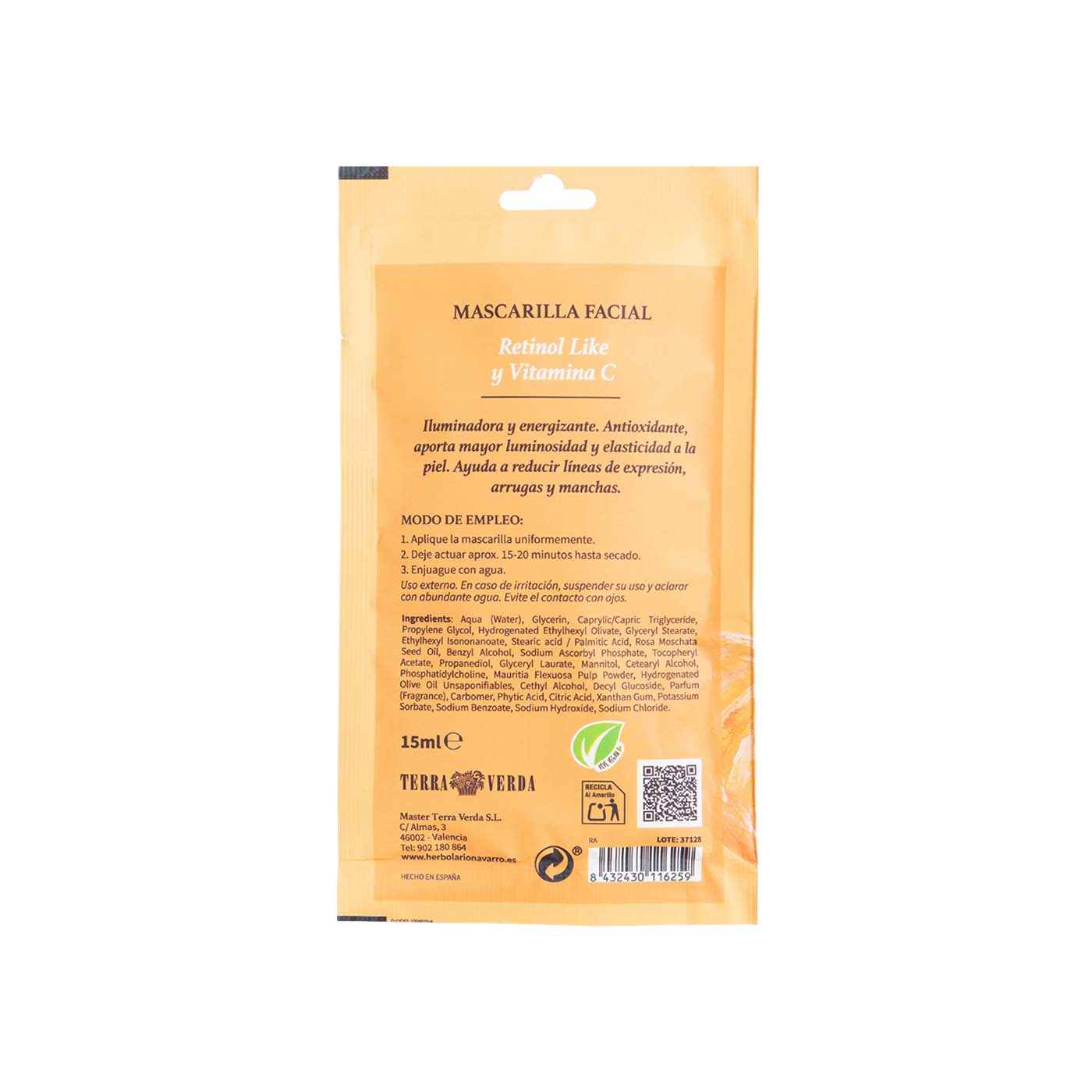 Mascarilla Facial Vitamina C y Retinol Like 15ml Terra Verda