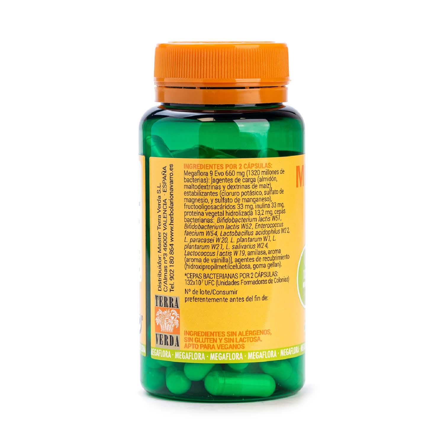 El complemento alimenticio Megaflora en cápsulas de Terra Verda es consideraderado un probiótico con más de 1300 millones de fermentos lácticos.