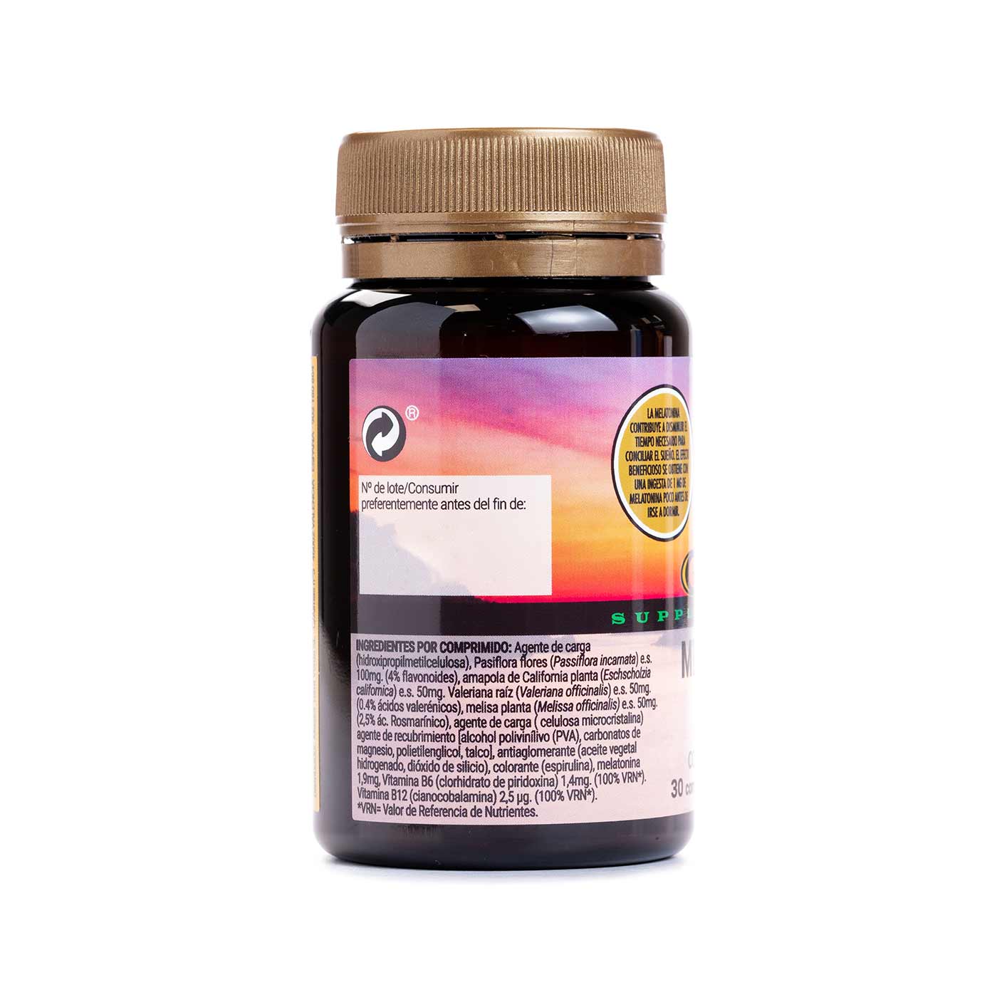 Complemento alimenticio a base de extractos de plantas, vitaminas y melatonina. La Melatonina contribuye a disminuir el tiempo necesario para conciliar el sueaño. El efecto beneficioso se obtiene con una ingesta de 1mg de melatonina poco antes de irse a dormir.