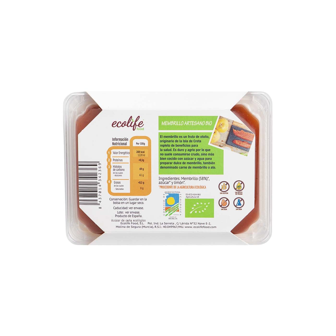 Sabor de antaño con el dulce más tradicional de la tierra: Membrillo Ecológico Ecolife, pura esencia en cada bocado.